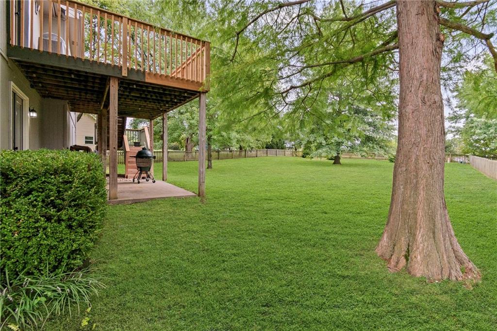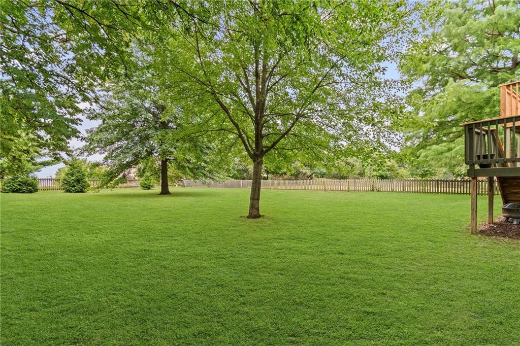with shelving. Exit the basement to your charming patio overlooking your enormous .38 acre, fenced-in backyard! Enjoy
