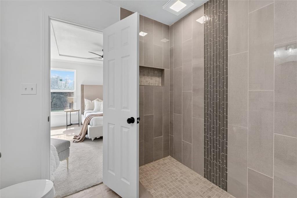 Inside, no detail has been overlooked. Both bathrooms have been completely remodeled, with the master suite standing out as a showpiece. The spacious master bathroom features a gorgeous walk-in shower, custom tile, and a large walk-in closet, giving you a spa-like retreat at home. Throughout the house you’ll find all new everything—carpet, paint, countertops, vanities, light fixtures, kitchen backsplash, and more. The fresh finishes and neutral palette combine with large windows to bring in natural light, creating a bright and airy feel in every room.