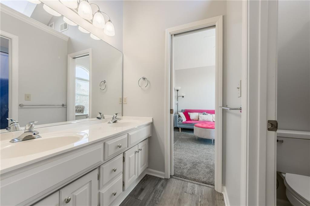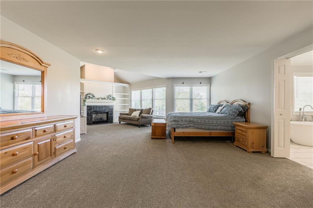 Oversized primary suite with fireplace, huge walk-in closet, soaker tub, and new walk-in shower. Spacious secondary bedrooms with walk-in closets and updated baths. Fresh interior paint, new hot water heater, and updated deck with aluminum railing. Unfinished basement adds potential for 1,000+ sq ft and is stubbed for a bath.