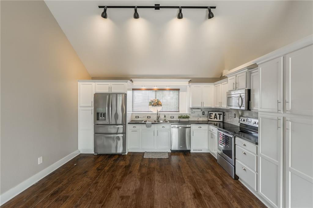 • Equipment Dishwasher, Disposal, Dryer, Humidifier, Microwave, Refrigerator, Built-In Electric Oven, Stainless Steel Appliance(s), Washer