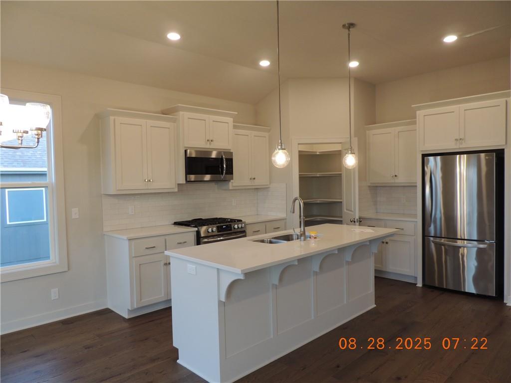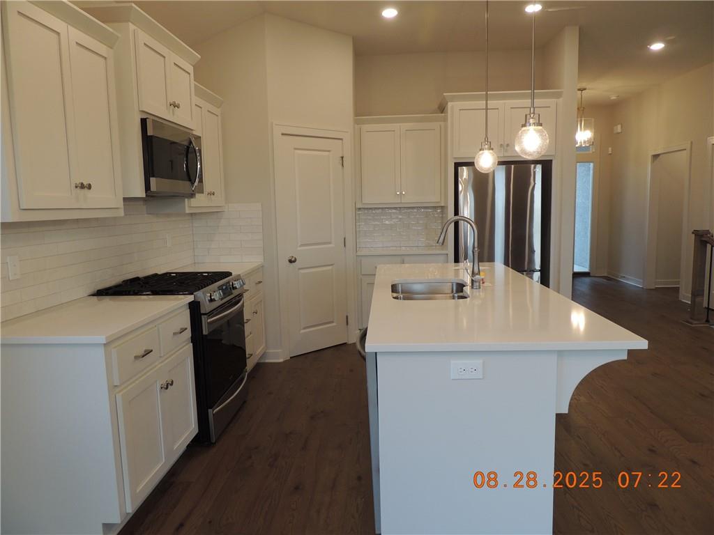 - Equipment Dishwasher, Disposal, Humidifier, Microwave, Refrigerator, Gas Range, Stainless Steel Appliance(s)