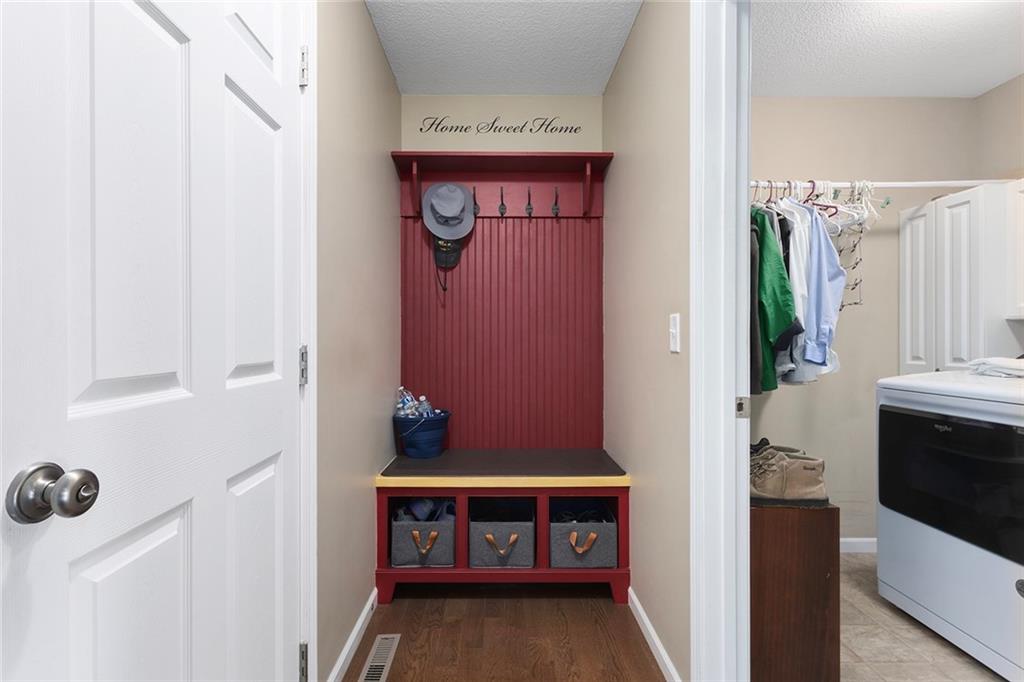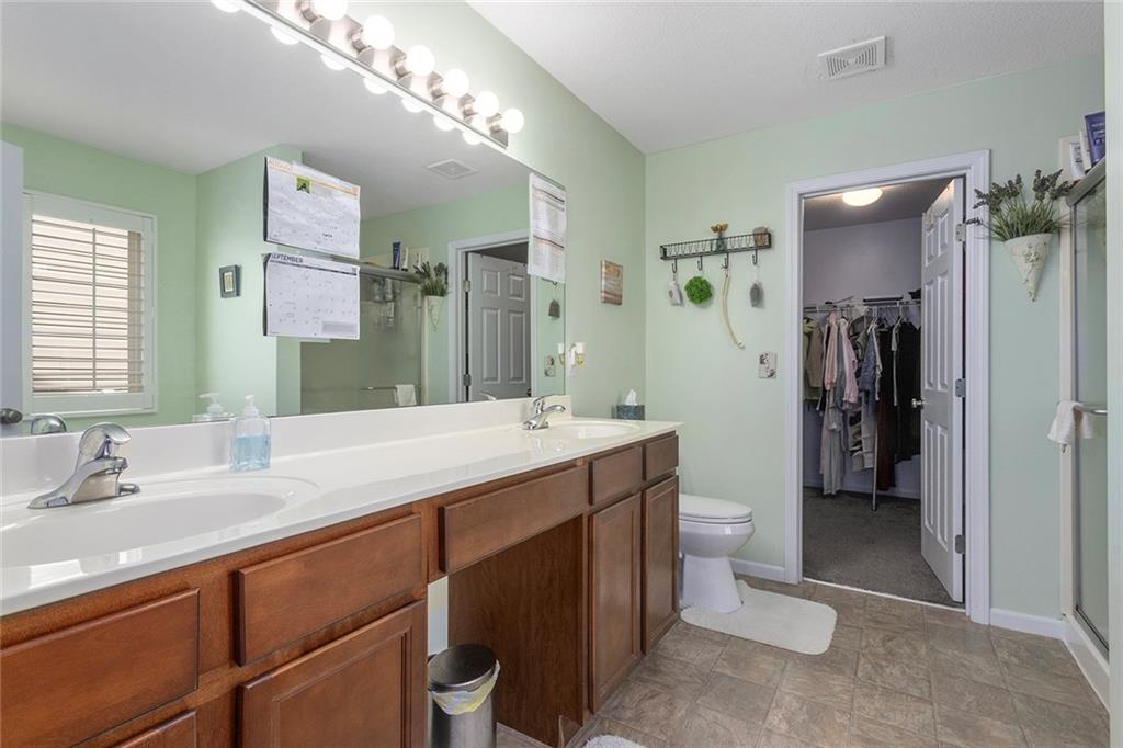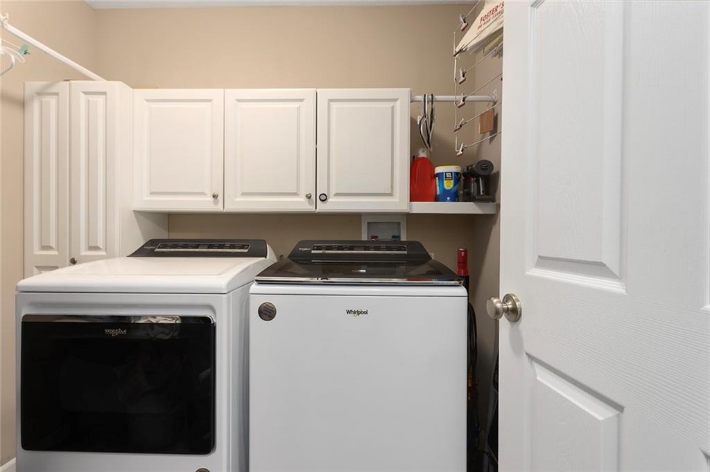 The primary suite offers a large walk-in closet and a private bathroom with dual sinks, a separate tub, and a shower for added convenience. A dedicated laundry room enhances functionality, and the two-car garage provides additional storage and parking.