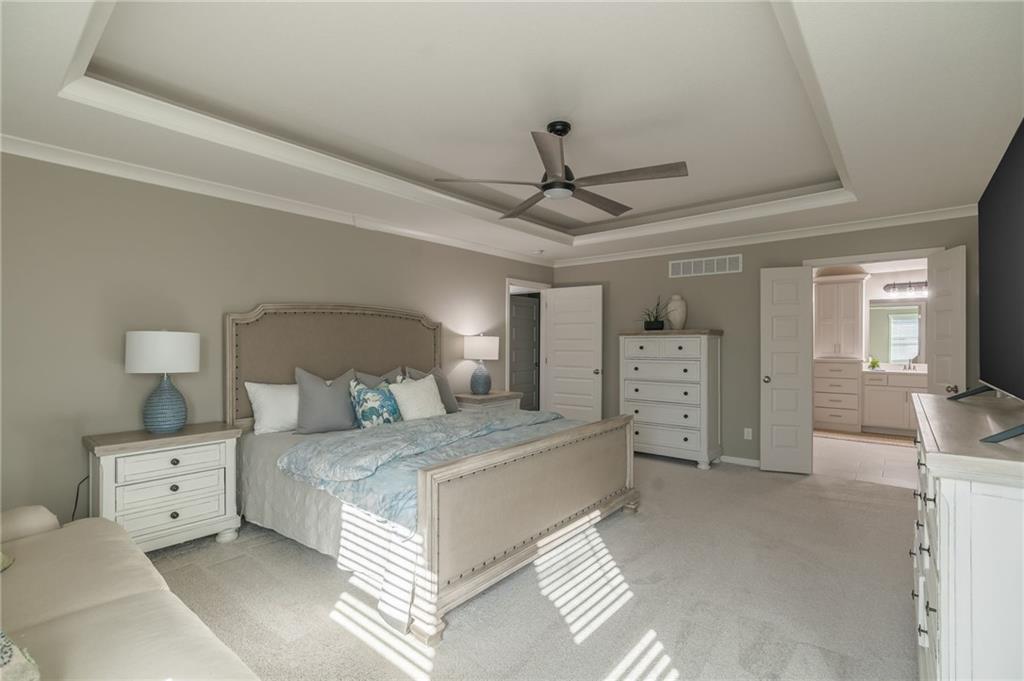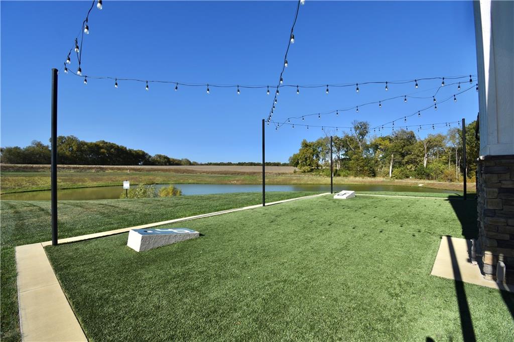 Additional highlights include epoxy-coated garage floors, sprinkler system, and access to amazing community amenities: barn-style clubhouse with kitchen and fireplaces, covered pavilion, two outdoor fireplaces, pickleball courts, walking trails, a 3-acre fishable pond, and outdoor year-round corn toss games and multi-depth swimming pool.
