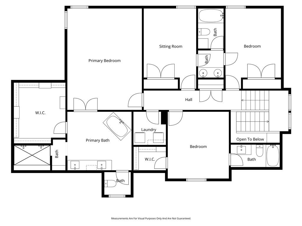The primary suite offers a large bedroom, walk-in closet, and luxury bath with tiled floors, freestanding tub, dual vanities with built-ins, and an oversized tiled shower with dual shower heads. One secondary bedroom features a private bath; two additional bedrooms share a Jack-and-Jill (Hollywood) bathroom. Convenient laundry on the bedroom level.