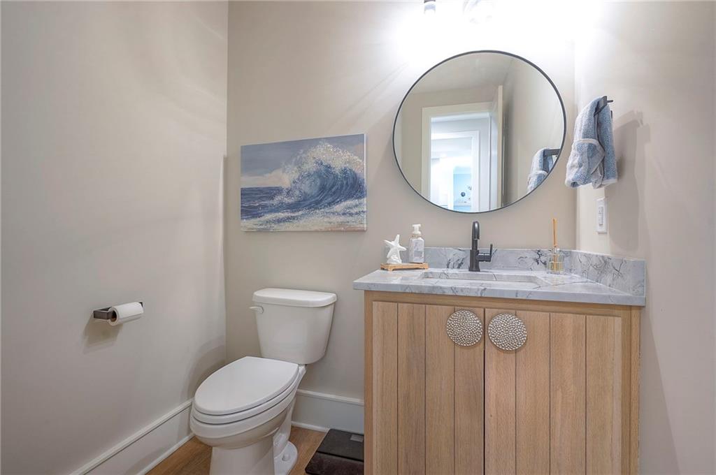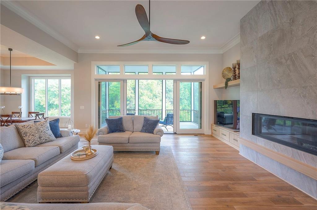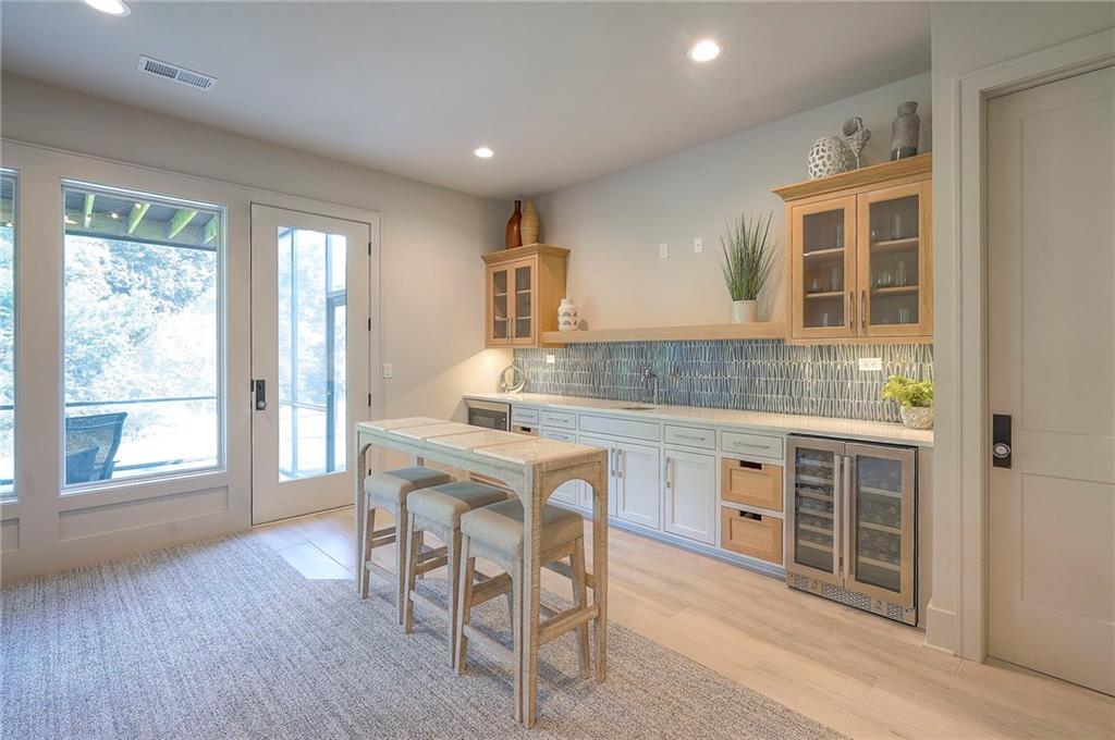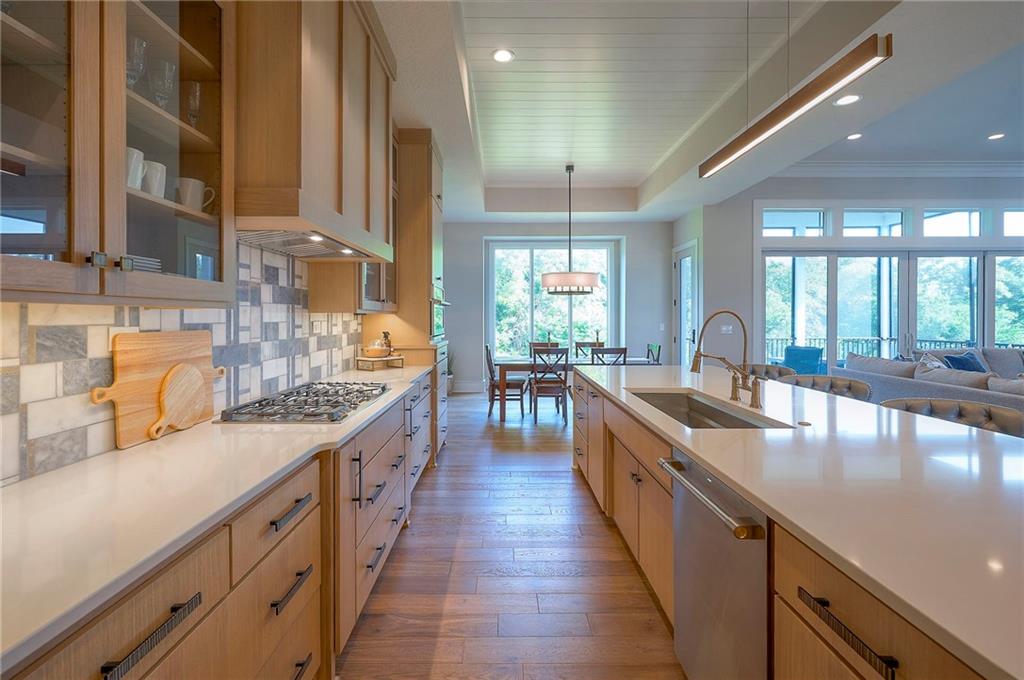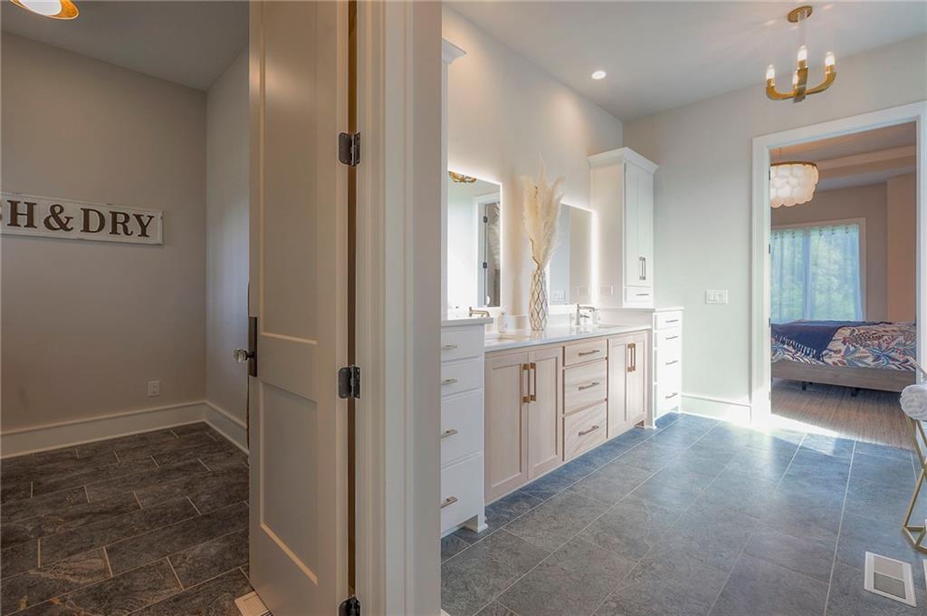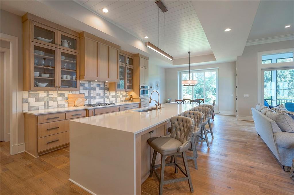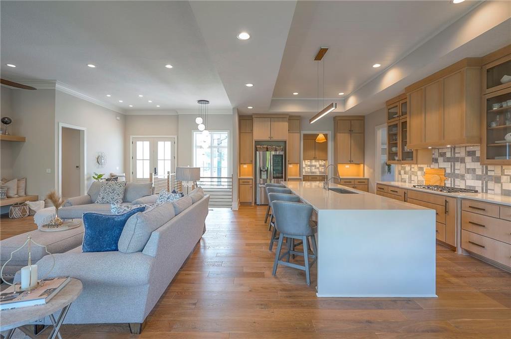 Step into this stunning custom Homes by Chris residence, beautifully landscaped and featuring a charming front porch that warmly welcomes you home. Nestled against serene woods and a protected stream, this property offers the perfect blend of privacy and nature. Inside, you’ll find an open-concept layout filled with natural light. The spacious kitchen boasts a large island, ample cabinetry, a breakfast room, and a butler’s pantry complete with a beverage center and additional counter space—ideal for entertaining. The luxurious main-floor primary suite features a statement wall, spa-like bath with backlit mirrors, a relaxing soaker tub, and a show-stopping walk-in closet with built-ins, a center island, and a dedicated makeup vanity. The finished lower level includes two additional bedrooms, a rec room with a full wet bar, and an expansive workshop with sealed floors, motion-sensor lighting, and double-door walkout access to the backyard. Whether you’re sipping coffee on the screened-in deck or unwinding on the covered porch, you’ll love the peaceful backdrop of mature trees and flowing stream. A true retreat with every detail thoughtfully designed.
