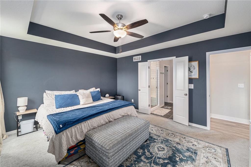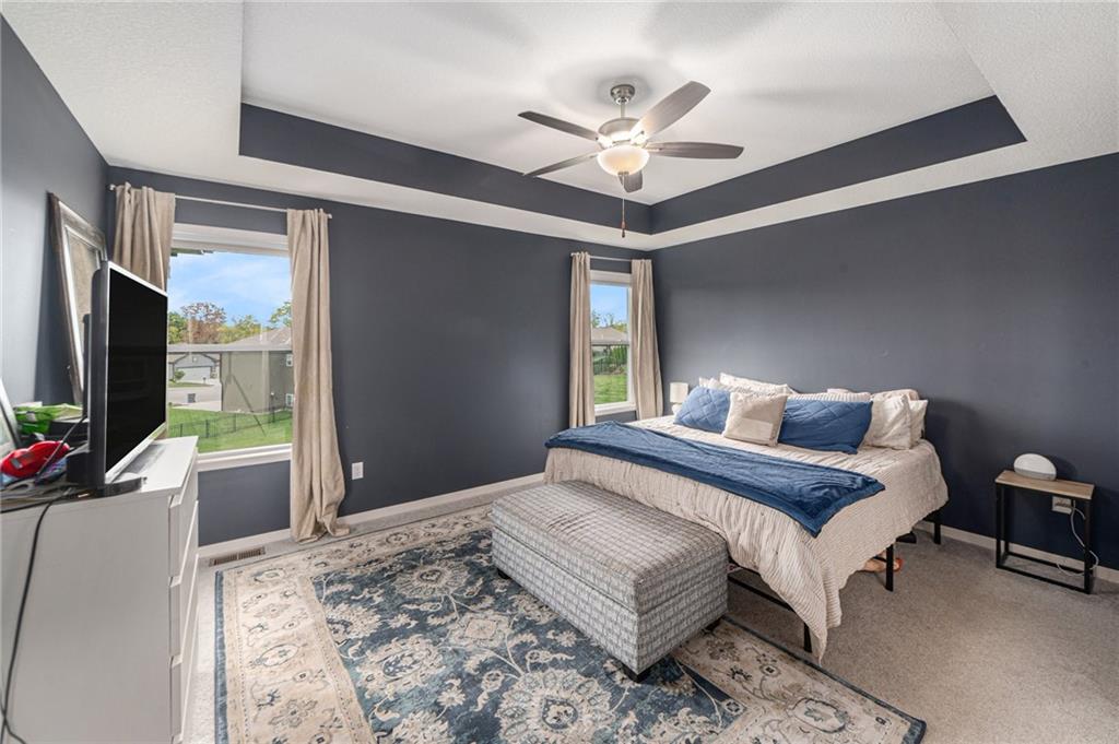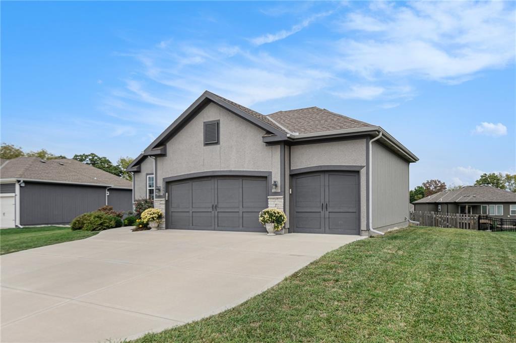 The master suite on the main floor includes a tray ceiling, large walk-in closet, and private bath with dual sinks and a walk-in shower. Also on the main level are a second bedroom, full bath, and laundry room. The finished walkout lower level adds two more bedrooms, a full bath, a second kitchen area with laundry hookups, and flexible living space with access to a fenced backyard and patio that is ideal for kids, pets, or outdoor fun. A spacious 3 car garage and extra storage space complete this move-in ready home.