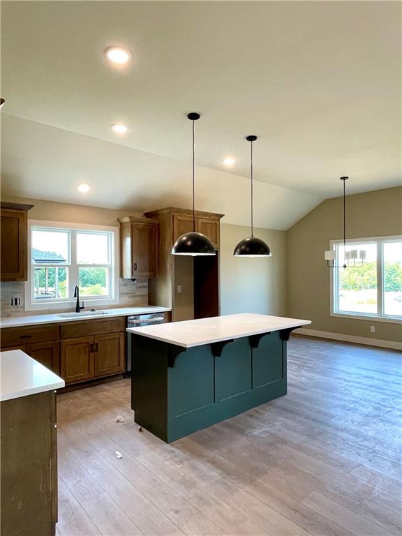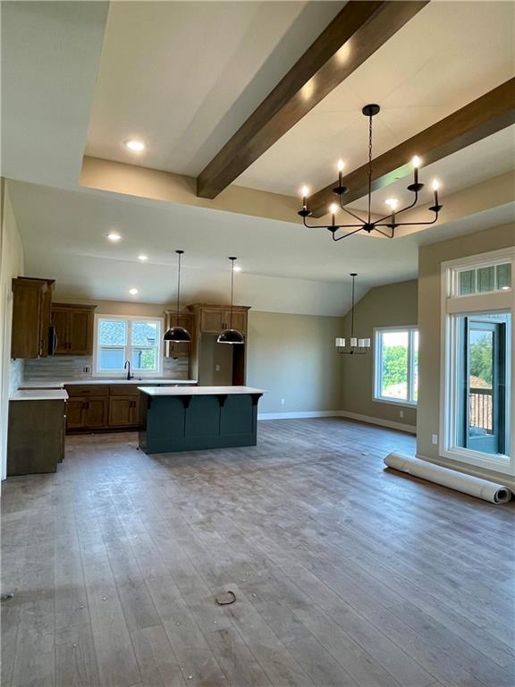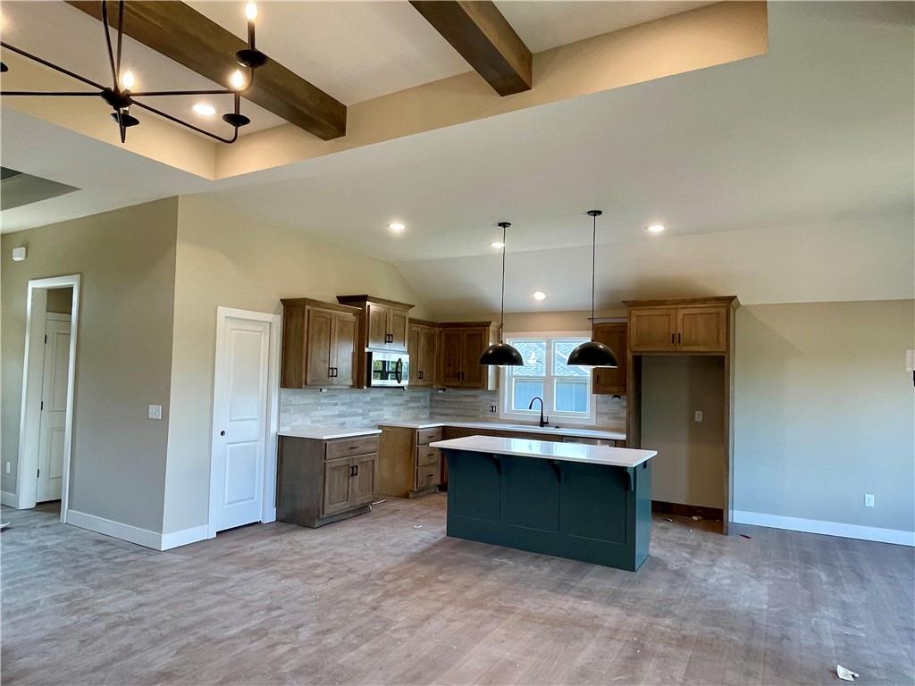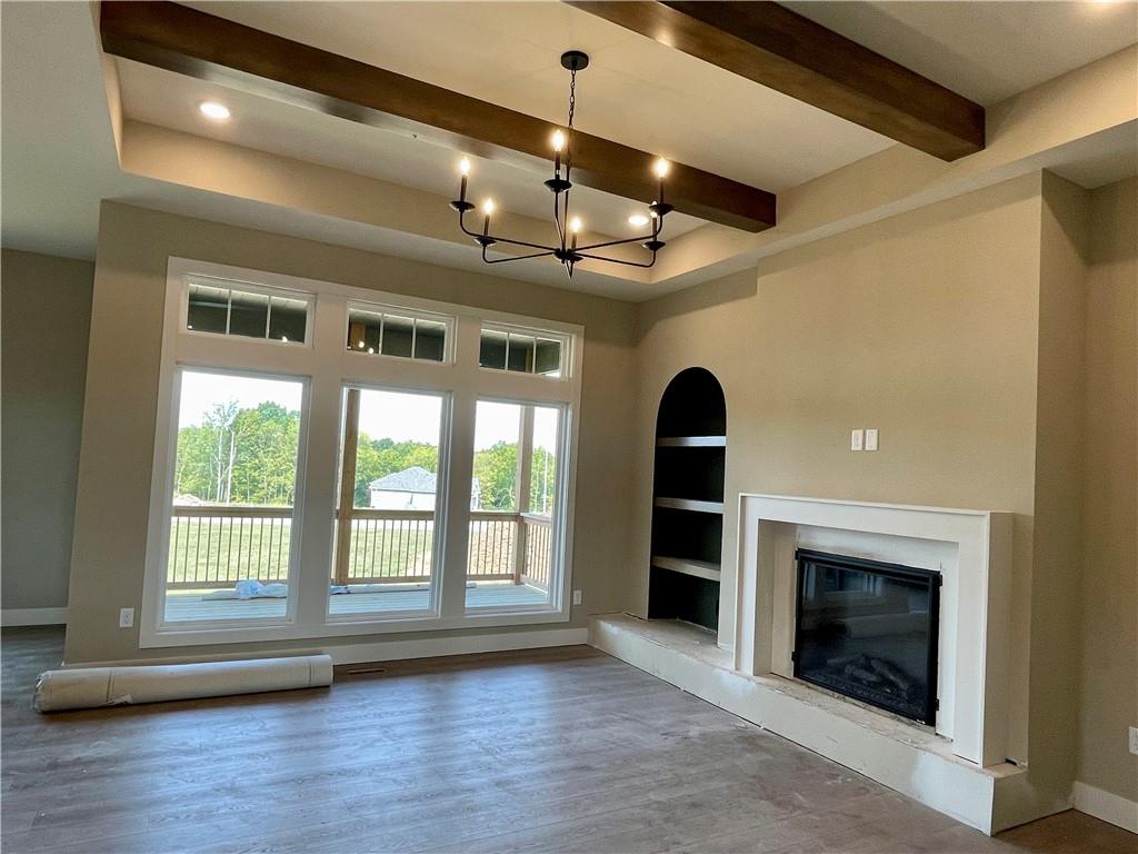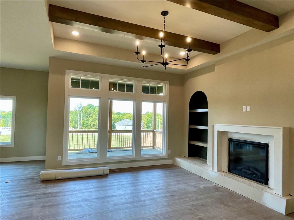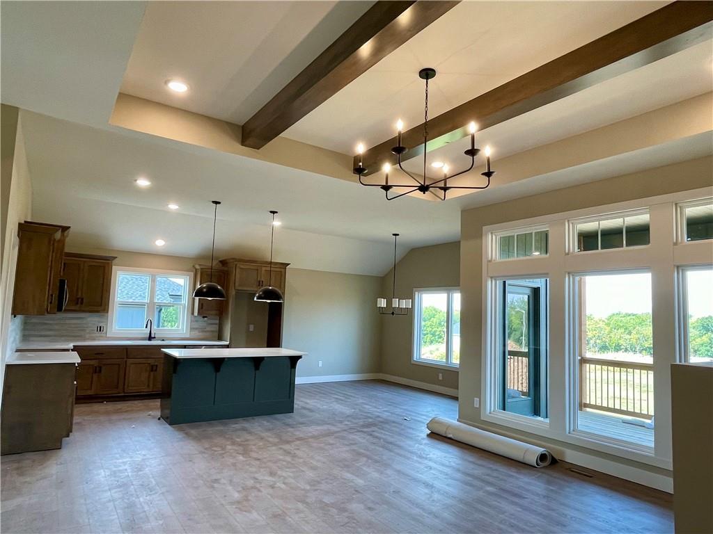 Azalea Gold by Kerns Homebuilding – Thoughtful design meets everyday comfort on a desirable corner lot. This 4-bedroom, 3-bath home offers true main-level living with the primary suite on the main floor and walk-out access to a covered deck from both the dining area and bedroom. The kitchen features custom cabinets, granite counters, and a walk-in pantry for style and function. The finished walkout lower level includes a bar with mini-fridge, cozy reading nook, two additional bedrooms, full bath, and generous storage—perfect for guests, entertaining, or hobbies. An open, airy floor plan with practical spaces makes this home the perfect balance of convenience and room to grow. This gorgeous home will be featured in the Kansas City Parade of Homes, September 20 – October 5th.