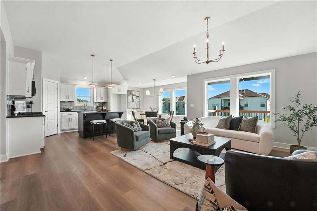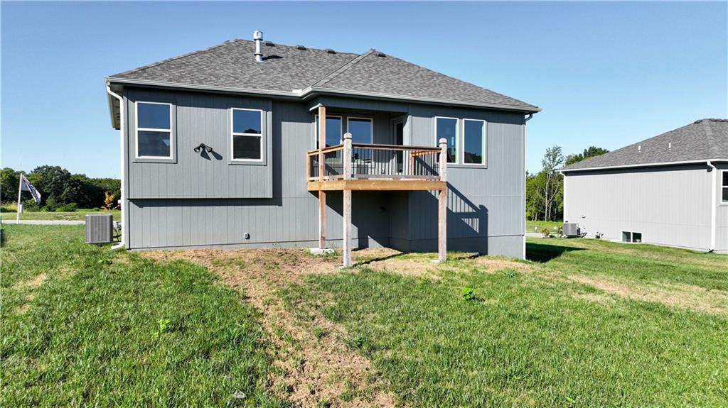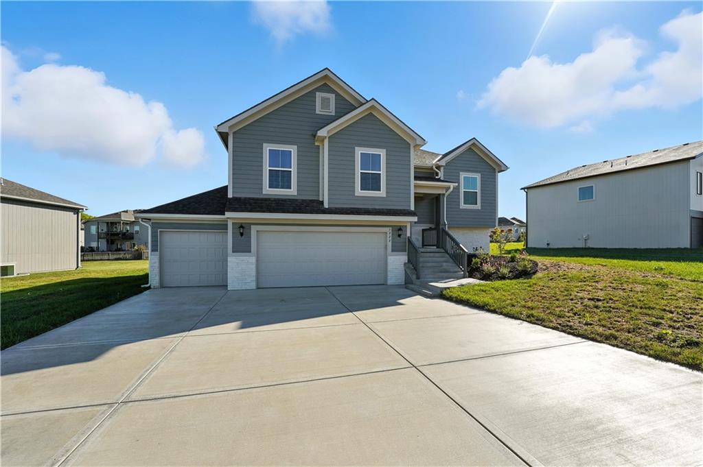The ASPEN by Kerns Homebuilders! Entry #20 in the 2025 Fall Parade of Homes. This 4-bedroom, 3-bath, 3-car garage home is complete and move-in ready. Main level offers 3 bedrooms, including a private primary suite. The finished lower level features a 4th bedroom, full bath, and spacious rec room—ideal for guests or extended living. Bright open layout with gas fireplace, custom kitchen with walk-in pantry, and stylish finishes throughout. Located in Woodland Creek within the Smithville AAA School District, minutes from Smithville Lake and KCI Airport.