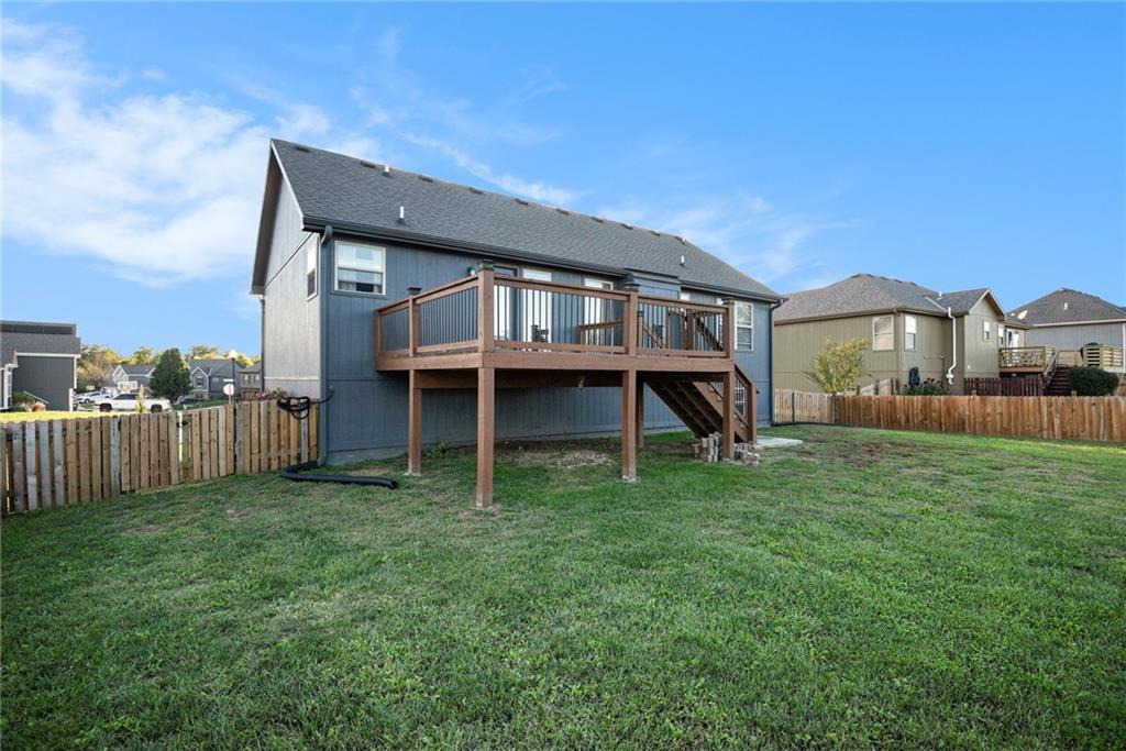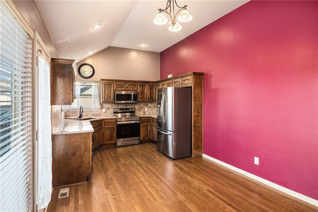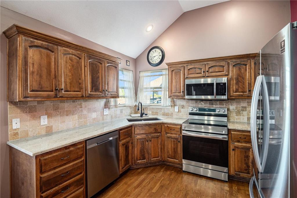 BETTER THAN NEW!! You will feel right at home in this 3 Bed 3 Full Bath Split-Level home! Enjoy brand new hardwood flooring in the main level living room and hallway, installed in 2024! Kitchen hardwoods were also re-finished and matched during the installation in 2024. Kitchen is open and inviting with new stainless steel Kitchen Appliances, Granite Countertops, Tile Backsplash and GORGEOUS Stained Maple Cabinets! Master bedroom is spacious with a luxurious jetted-tub, Tile stand up shower, double vanity and walk-in closet! This two owner home has been well-maintained and loved over the last 12 years, move right in and enjoy a Roof that is 3 years old, Exterior siding has been re-painted and sealed, Deck has been fully replaced, Newer Interior Paint, New garage doors AND Openers, New Hand railing on the front porch. Enjoy the peaceful nights on the back deck overlooking the scenic view of Fun Farm Pumpkin Patch! The pride of home ownership really shows on this one!! Within walking distance of Playgrounds, schools and only minutes away from Smithville Lake and all conveniences on 92 Hwy.