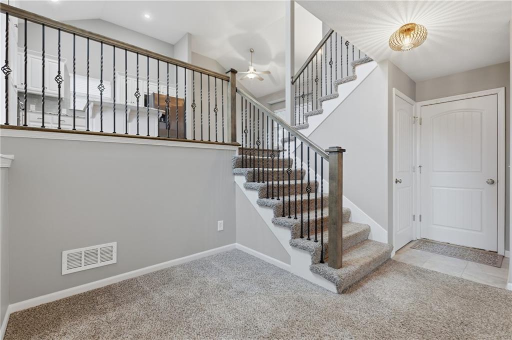 The main home features 3 bedrooms on upper level and 2.5 bathrooms.  The Kitchen with a large Granite Island, Custom White Cabinetry, a nice Pantry, and a Brand-New High-end faucet. Fresh New Interior Paint throughout the home adds a bright, updated feel, while stunning hardwood floors flow seamlessly through the main living areas.