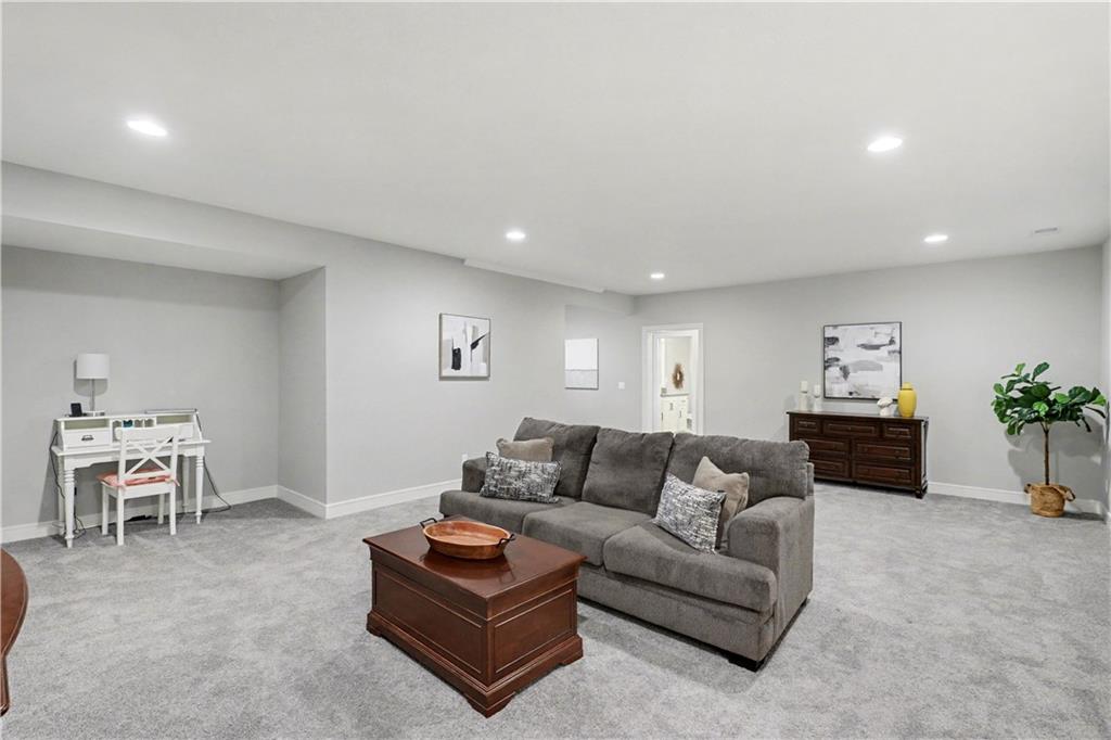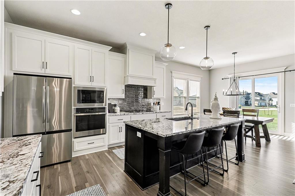 Why buy new when you can get the best value in the neighborhood right here? This stunning reverse 1.5-story is the total package—4 bedrooms, 3 baths, a 3-car garage, and just over 2600 square feet of beautifully maintained space that truly shows like new. Sitting proudly on a flat corner lot, this home greets you with an open floor plan, soaring ceilings, and incredible natural light that fills every room. The kitchen is a standout with its oversized island, abundant cabinetry, granite countertops, stylish backsplash, gas stove, and a walk-in pantry—perfect for everyday living or hosting a crowd. The kitchen flows seamlessly into the great room, complete with custom cabinets and built-ins framing the elegant tiled fireplace.