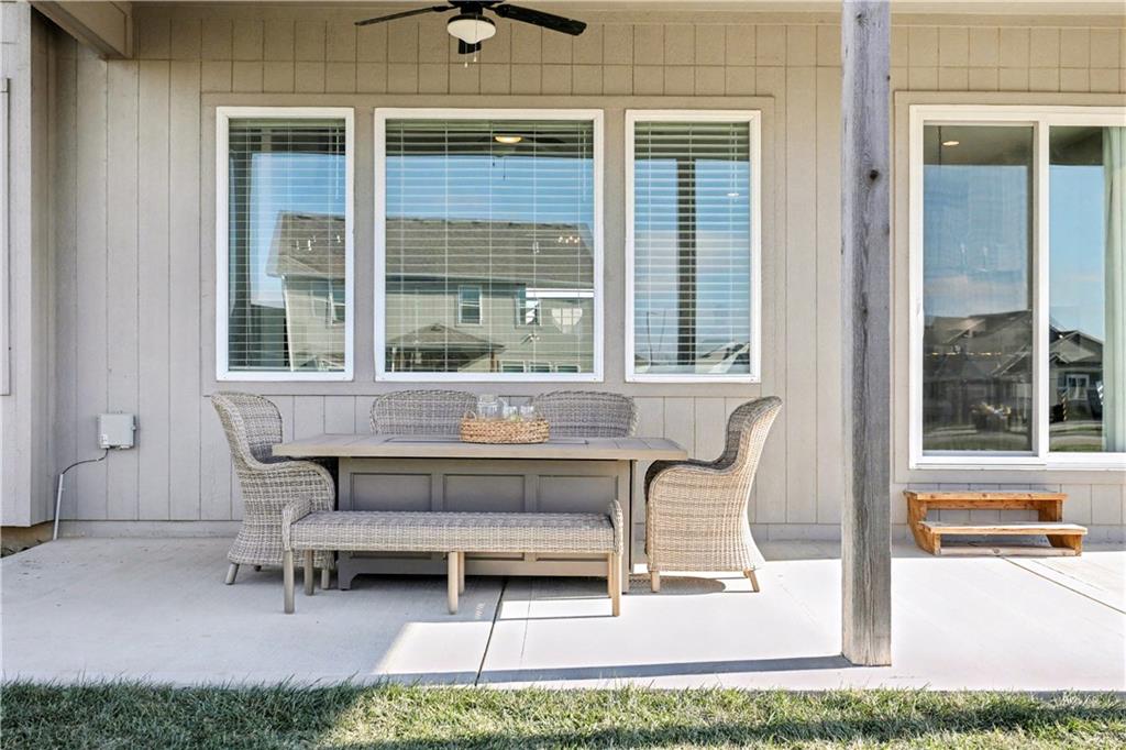 Step out from the dining room onto the fully covered patio, ideal for morning coffee, evening cocktails, or game-day grilling.