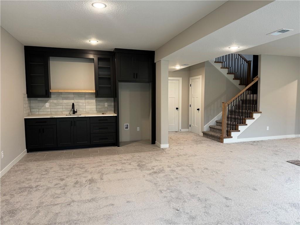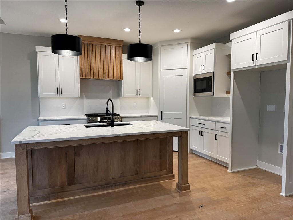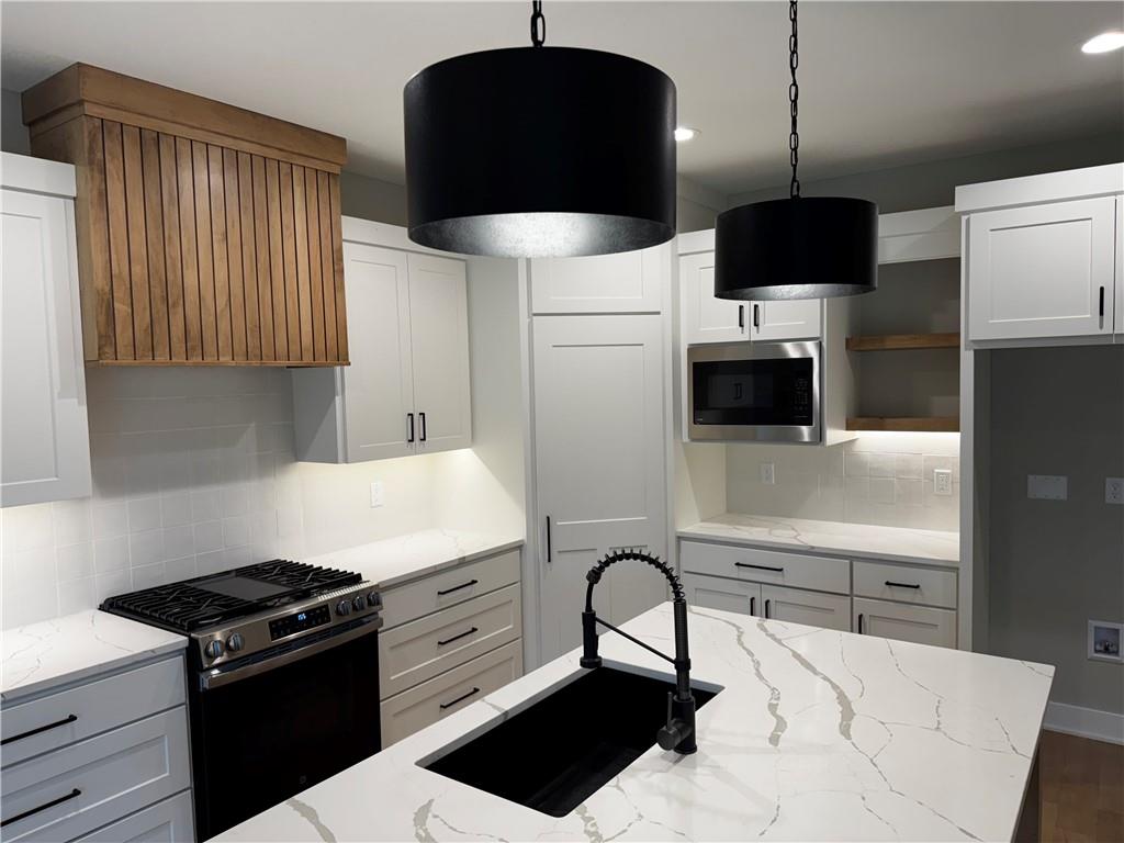 Beautiful Reverse 1.5 Story on a walkout lot backing to green space! McBee Custom Homes’ Richline II features large living space with fireplace, open to kitchen and dining for easy entertaining. Rich custom finishes with multiple vault box ceilings, drop zone, and stone countertops in every bathroom and kitchen. Main level Primary Bedroom with large closet conveniently connects to laundry room with COUNTER SPACE. Second living space on bright and sunny lower level to expand the party, and 3 bedrooms or hobby spaces in addition to storage space. Garage that actually fits the truck!