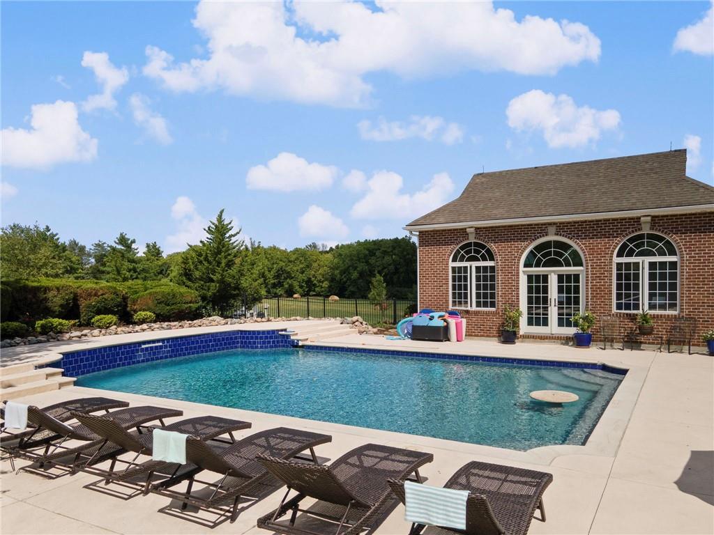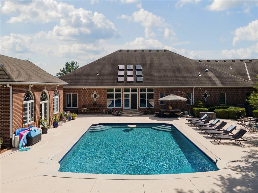 This one of a kind property is breathtaking and features a sprawling all brick ranch that is rich with features and a well thought out floor plan. It’s got it all! Enjoy your own sanctuary with nary a neighbor, but still close to Liberty and Kearney. (Kearney Address, Liberty Schools.) Gated entrance with video comms, long paved driveway to the house and 40×60 outbuilding. Enormous Kitchen with custom cabinets and a spacious butler’s pantry. Large Dining area off of Kitchen and looks into the Living Room. 2 Bedrooms on the back of the house, each with their own full bath. The Master Suite is amazing! Including a breezeway to the in-ground and enclosed hot tub room with a fireplace. Sunroom has a half bath for pool guests and a wet bar. The pool deck is off the sunroom and on the same level as the main floor. The study is located off the entry to the home, and has a fireplace and a secret door! Both ends of the basement walkout. One end is the entrance to the massive suspended garage with 3 garage doors, (4 car garage main level!). There’s so much room down there! The other end walks out to a large patio and garden. Inside is a full bar, rec room and living room with fireplace. Basement also has two workout rooms and a sauna. It’s also home to the fourth bedroom with a full bath as well. Lots of unfinished space and storage in the basement, so there’s room to repurpose it however you’d like. This is a “see it to believe it” type of property! Home sits on 10 acres with an additional +/- 30 acres available for a total of +/- 40 acres!