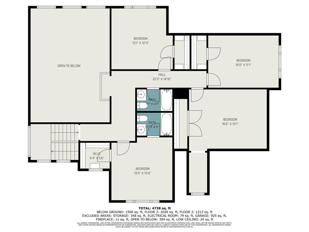 dressing area. Upstairs, you’ll find four generously sized bedrooms, each with walk-in closets and bathroom access. One