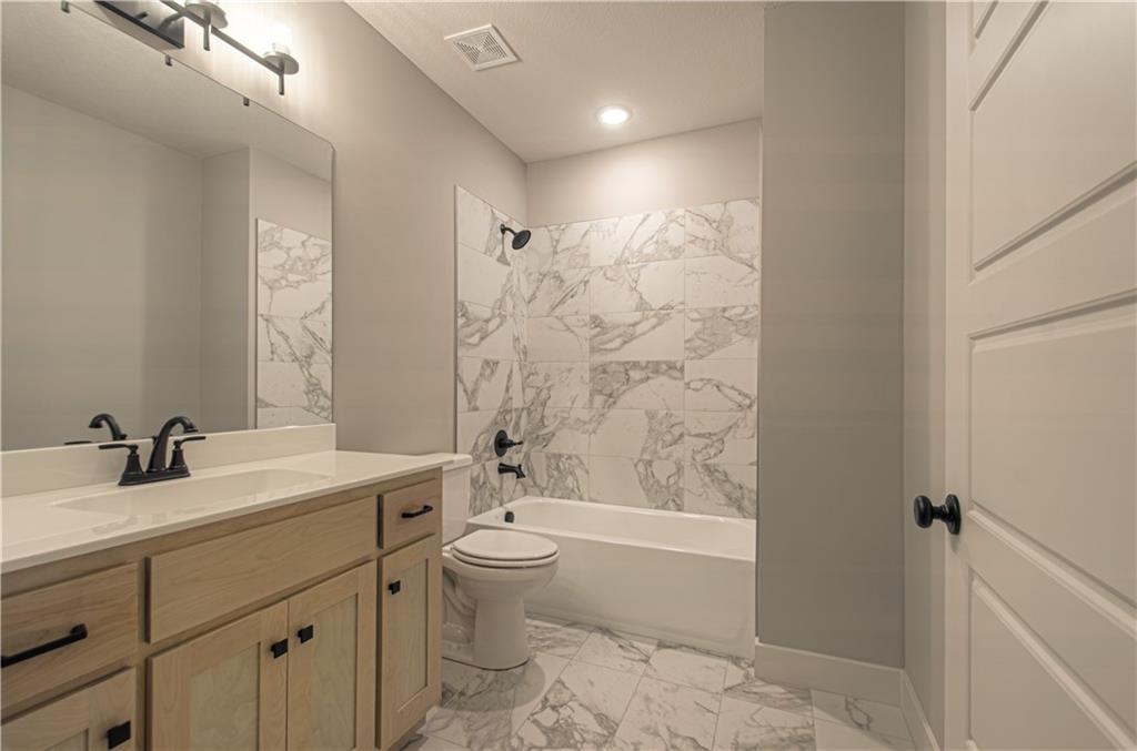 Construction is complete! Another beautiful reverse plan, The Ashcroft built by Syler Construction. You will love the 4-car tandem garage on a corner lot. Beautiful open flow throughout this home. Grand staircase with a large mirror, oak floors in the entry, hallways, great room and the kitchen on the main level. The kitchen offers an island that overlooks the great room and covered deck, walk in pantry, beautiful custom cabinets and the laundry room and drop zone area near the garage. Walk to the owner’s suite and you will fall in love with the bathroom, tile floors, garden tub, walk in shower, double vanity and a walk-in closet. The lower level is finished with a family room, two bedrooms, full bath and a wet bar. Don’t forget the two storage rooms!