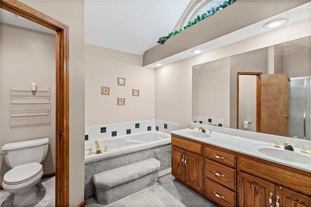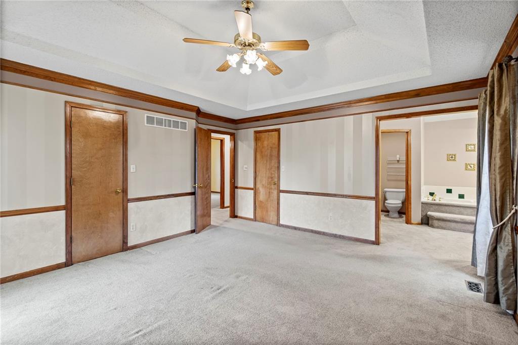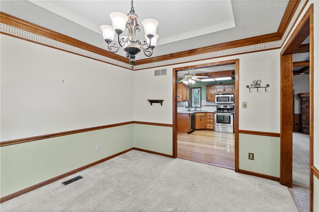 Welcome to this spacious raised ranch offering both comfort and function. The main level features a formal dining room, a bright living room with a classic brick fireplace, and an eat-in kitchen complete with granite countertops and stainless steel appliances that stay with the home. The primary suite boasts a double vanity, soaker tub, and separate shower, while two additional bedrooms and a full bathroom complete the main floor.