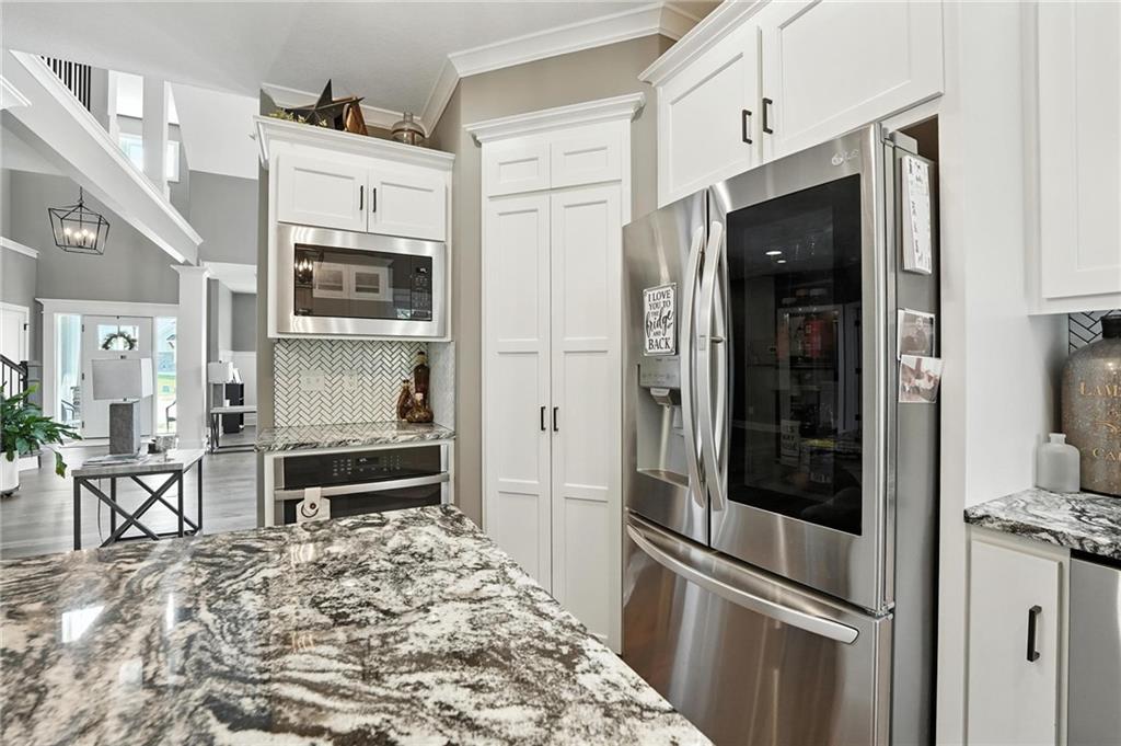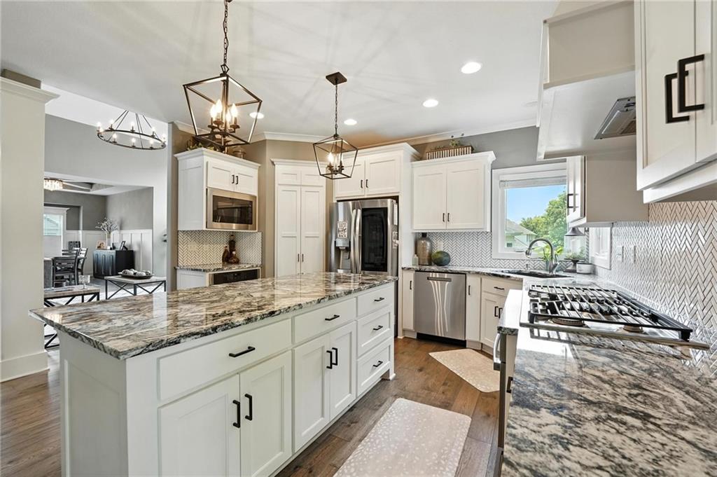 - Equipment Cooktop, Dishwasher, Disposal, Exhaust Fan, Microwave, Built-In Oven, Gas Range, Stainless Steel Appliance(s)
