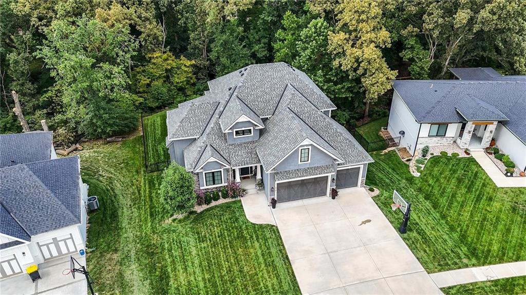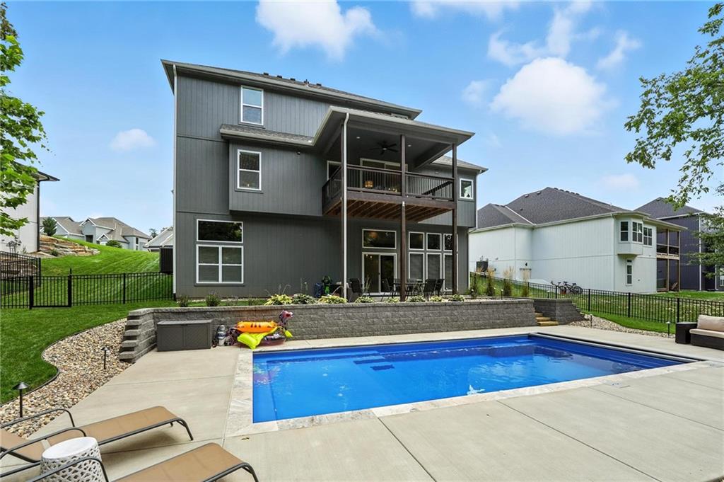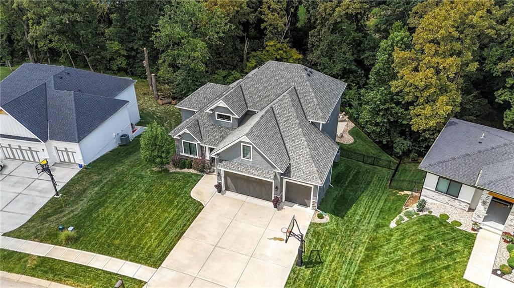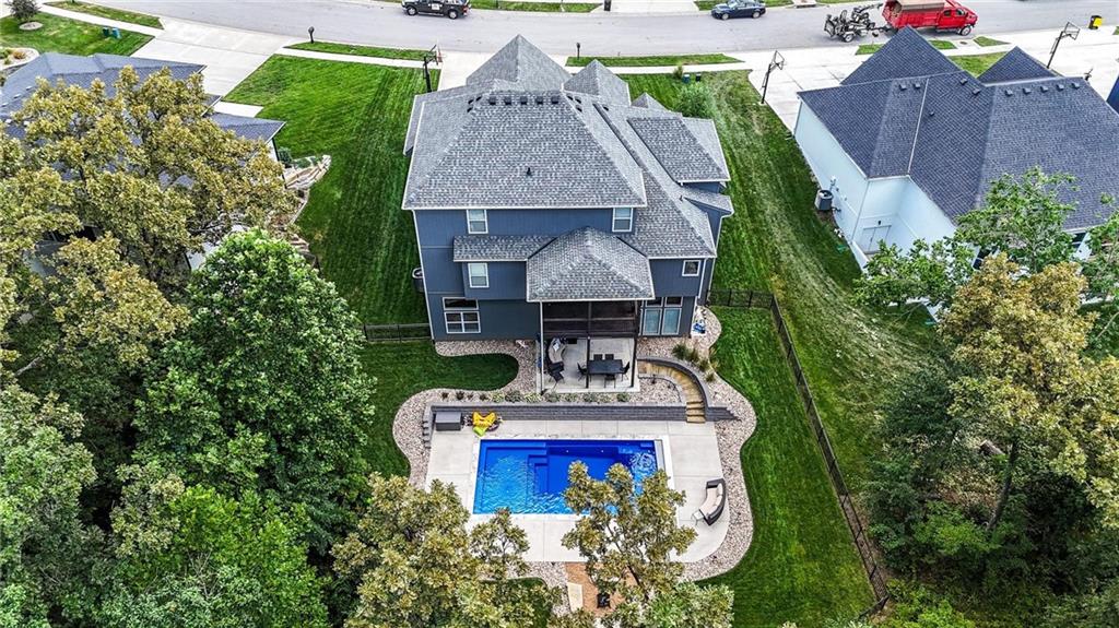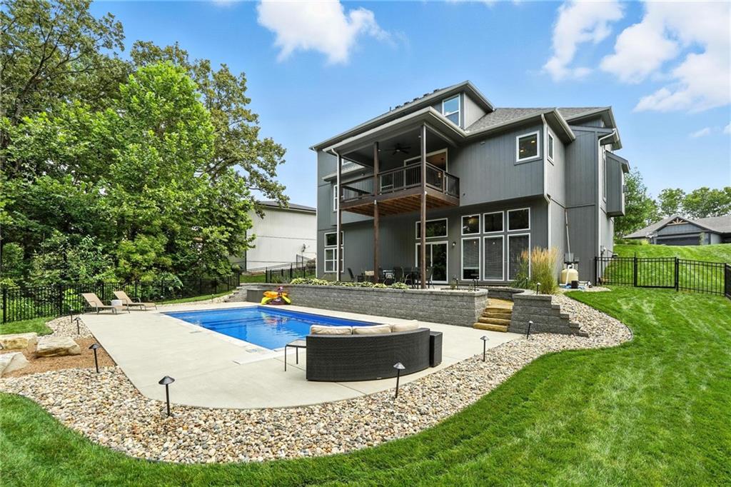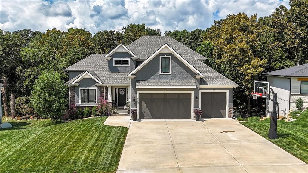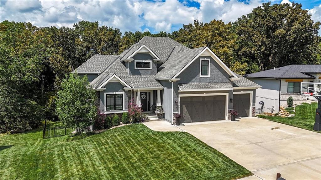 Welcome to this stunning 1.5-story home that blends timeless elegance with modern luxury, located in one of the most desirable, private neighborhoods in the Kearney School District. Tucked away in a quiet dead end neighborhood, with only one way in or out, this 5-year-old masterpiece offers tranquility, security, and sophistication. Boasting 6 spacious bedrooms and 4.5 bathrooms, this home was thoughtfully designed for both everyday living and grand entertaining. The heart of the home features quality finished throughout, from quartz countertops, stainless steel appliances and upscale fixtures to expansive living spaces filled with abundant natural light. The finished walk-out basement is an entertainer’s dream, complete with soaring ceilings, oversized windows, a massive wet bar, and extra-tall doors that help to elevate the space. There’s no shortage of room to spread out with tons of storage and generous square footage on every level. Step outside to your own private oasis: a nearly-new in-ground pool surrounded by gorgeous professional landscaping and hardscaping, offering the perfect place to relax or host unforgettable gatherings. Enjoy morning coffee or evening sunsets on the elevated deck overlooking the serene private backyard. Additional highlights include a 3-car garage, prime cul-de-sac location, and exceptional attention to detail throughout. Don’t miss your chance to own this extraordinary home in a peaceful, tightly-knit neighborhood — where luxury meets lifestyle.