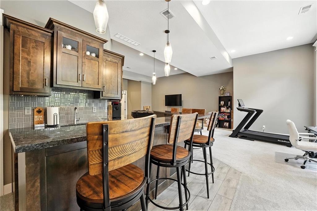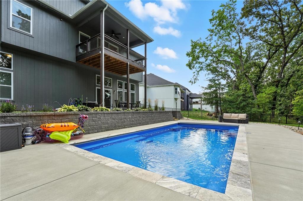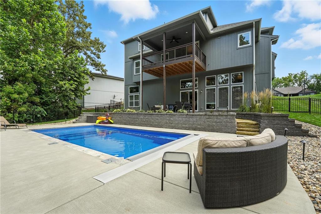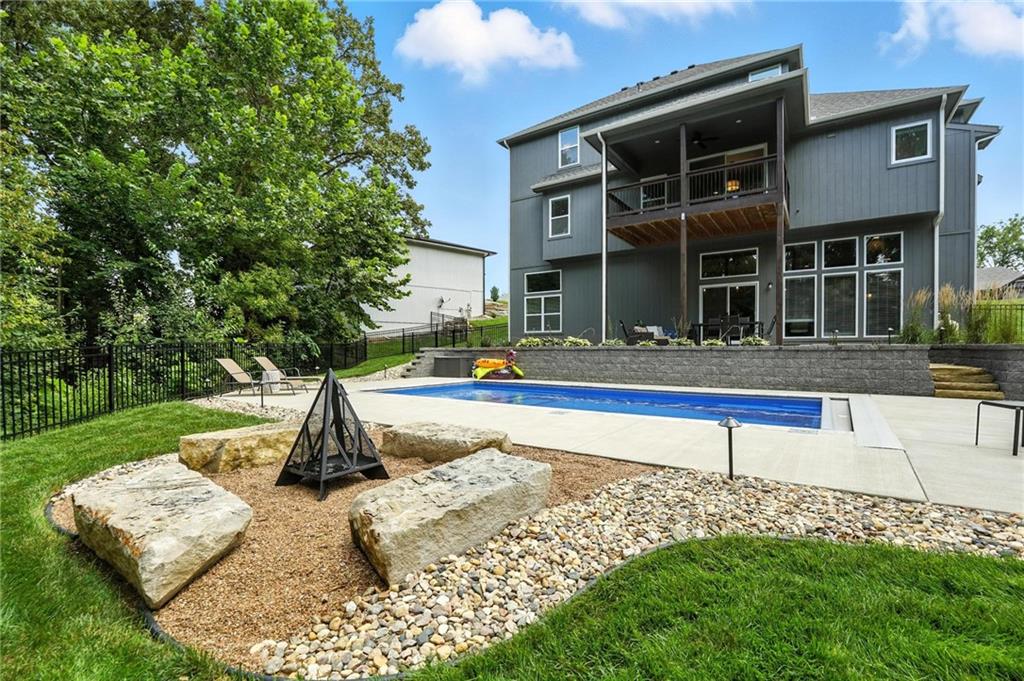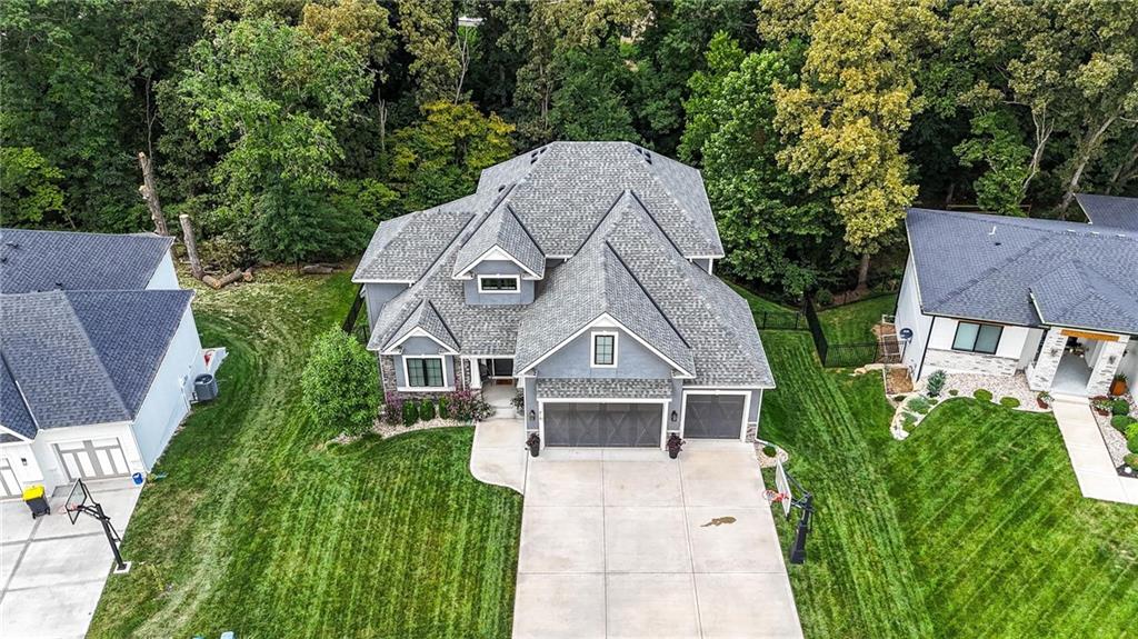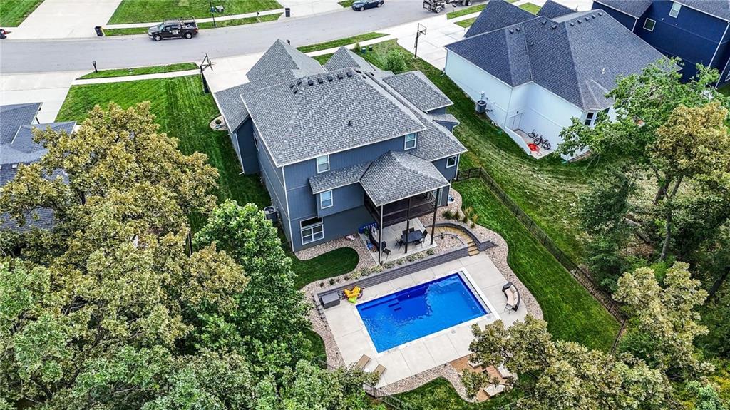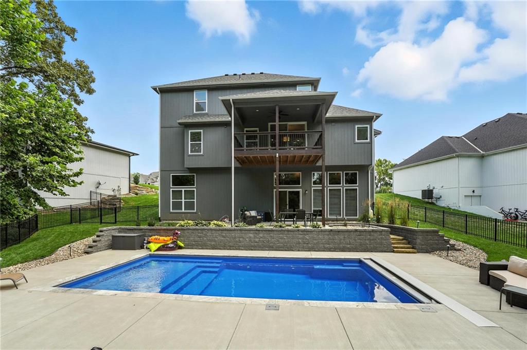Welcome to this stunning 1.5-story home that blends timeless elegance with modern luxury, located in one of the most desirable, private neighborhoods in the Kearney School District. Tucked away in a quiet dead end neighborhood, with only one way in or out, this 5-year-old masterpiece offers tranquility, security, and sophistication. Boasting 6 spacious bedrooms and 4.5 bathrooms, this home was thoughtfully designed for both everyday living and grand entertaining. The heart of the home features quality finished throughout, from quartz countertops, stainless steel appliances and upscale fixtures to expansive living spaces filled with abundant natural light. The finished walk-out basement is an entertainer’s dream, complete with soaring ceilings, oversized windows, a massive wet bar, and extra-tall doors that help to elevate the space. There’s no shortage of room to spread out with tons of storage and generous square footage on every level. Step outside to your own private oasis: a nearly-new in-ground pool surrounded by gorgeous professional landscaping and hardscaping, offering the perfect place to relax or host unforgettable gatherings. Enjoy morning coffee or evening sunsets on the elevated deck overlooking the serene private backyard. Additional highlights include a 3-car garage, prime cul-de-sac location, and exceptional attention to detail throughout. Don’t miss your chance to own this extraordinary home in a peaceful, tightly-knit neighborhood — where luxury meets lifestyle.