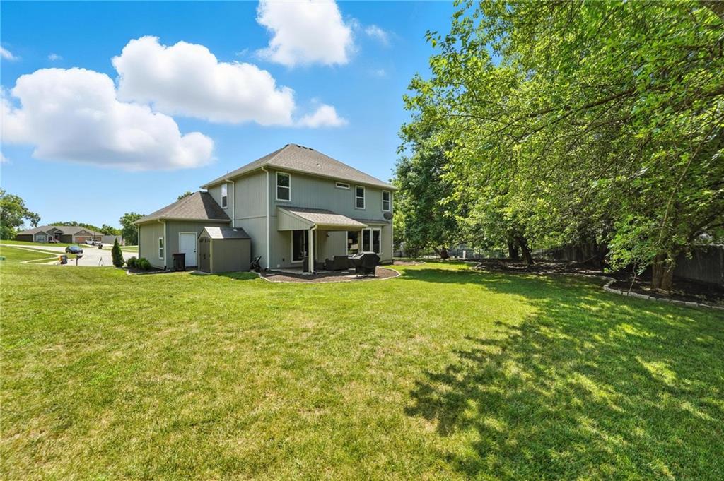 This move-in ready home offers modern upgrades and plenty of space inside and out. The kitchen features granite counters, rich wood cabinetry, and brand-new microwave and dishwasher (2024). Enjoy the comfort of a spacious primary suite with a walk-in closet, plus the efficiency of a tankless water heater (2022). Outside, the oversized lot has been fully refreshed with new block-edged landscaping, fresh trees and bushes, and a covered patio perfect for entertaining. A custom shed on a permanent pad provides extra storage, and the expansive yard offers room to play, garden, or relax.
