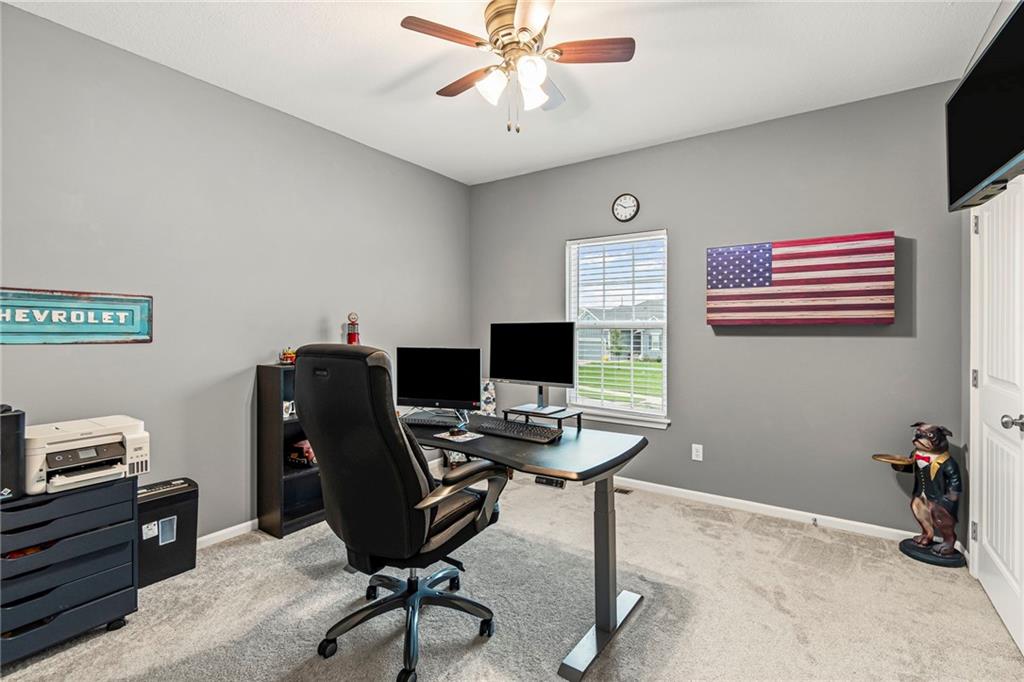 Out back, unwind on the covered deck or entertain on the extended patio overlooking the beautifully maintained yard. With an oversized three-car garage and access to Clay Meadows’ neighborhood pool, this home blends small-town Liberty charm with modern style and convenience.