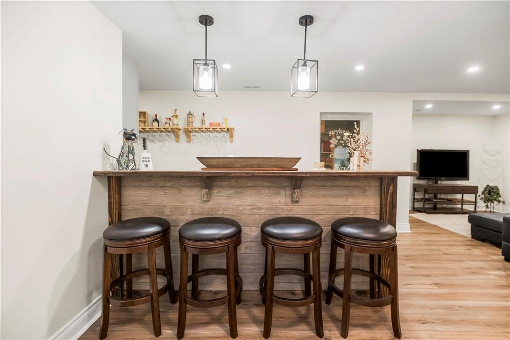 WELCOME HOME to this beautiful reverse 1.5-story home in Liberty, MO. With all-new flooring, fresh paint throughout, and thoughtful upgrades on every level, this home offers comfort, character, and exceptional livability. Step inside to a warm and inviting entryway that immediately reveals the home’s spacious and well-defined layout. On the main level, you’ll find a formal dining room and a cozy living room, creating a welcoming central gathering space. The left main-level wing includes the primary suite with its own private bath, a second bedroom with a full bath, and the laundry room. The right main-level ring offers the kitchen, walk-in pantry, an eat-in breakfast area, and a conveniently located half bath. Just off the kitchen, you’ll find two additional bedrooms and a full bathroom. The walkout lower level is an entertainer’s dream! Step into a spacious recreation area with a full bar, wine cellar, pool table, and a relaxing family room. The lower level continues with a 5th true bedroom, 4th full bathroom, and a 6th non-conforming bedroom located in the storage area where it could act as an additional room for guests, workout room, or even office. Additionally, you find a secret door that leads to a charming she-shed adding a fun and unique touch you won’t find in other homes. With its generous layout, multiple functional living zones, and numerous updates throughout, this home is truly move-in ready and meticulously maintained. A rare find in Liberty, offering space, character, and upgrades at every turn.