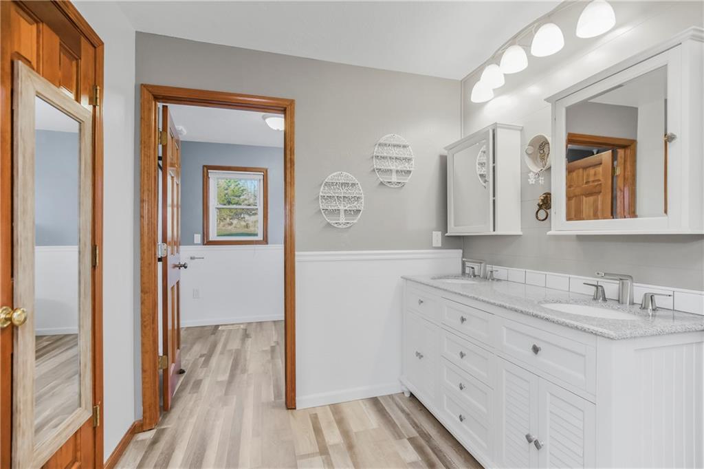 Can you imagine finding a home under $385,000 IN LIBERTY with UPDATED windows, gutters, AC, furnace, renovated bathrooms, updated flooring in living/kitchen, tankless water heater, updated attic insulation, quartz countertops in the kitchen, and upgraded ~$40,000+ PREMIUM*EXTRA THICK*AND*INSULATED*SIDING – with 6 bedrooms – AND on almost a half-acre lot – in one of the best neighborhoods in Liberty?! Oh, and the main living room has a freestanding fireplace that performs like a champ and is a secondary option to using the central heating! The primary bedroom is on the main level with a completely renovated private bathroom. Enjoy the oversized laundry room with its own walk-in closet! Upstairs, there are 5 more bedrooms – CAN YOU SAY FLEXIBILITY?! The finished basement provides another living space for escape and indoor recreation. Side entry garage of dreams with separated bays provides for even more flexibility and workshop options! Enjoy the open floorplan with updated flooring between the living, dining, and kitchen areas. The back patio becomes a natural extension of the main level for gatherings and casual evenings. Location, location, location. This home is a short walk to the park, easy access to shopping, I-35, and is in the highly sought after Lewis & Clark Elementary boundaries of the Liberty School District. Experienced buyers will understand the value of having such important & expensive updates (premium siding, updated windows, HVAC, GUTTERS, renovated bathrooms, insulation)!!