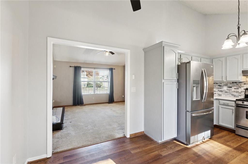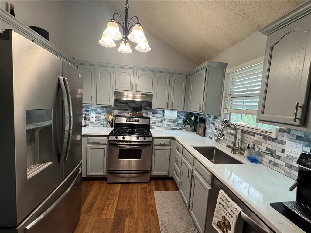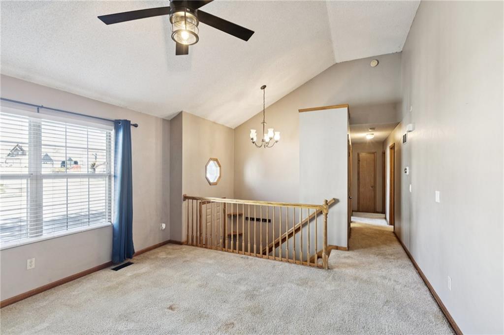 Wow! Check out the curb appeal, mature trees and large corner, cul-de-sac lot when you pull up to this home! As you walk inside, you’ll immediately notice the tall, vaulted ceilings and warm, cozy fireplace in your spacious living room! Then, venture into the completely UPDATED kitchen with quartz countertops, painted cabinets, under cabinet lighting and pantry with pull-out shelves! All stainless steel appliances stay! Updated smart switch lighting throughout main level! Enjoy extra family space in your finished lower level family room with half bath! Relax outside on your large deck overlooking the fenced backyard and green space beyond that! And, to top it off, look at these big ticket items that are already done for you: Furnace and Air Conditioner only 3 years old! Roof and gutters only 2 years old! Garage door openers only 2 years old! Hurry! Don’t miss your opportunity to get into this beautiful home in Liberty school district!