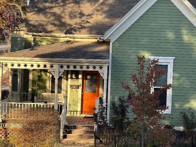 This beautifully updated century home seamlessly blends historical character with modern comforts. Showcasing classic Queen Anne architecture, the residence features original moldings, refinished pine floors, and spacious bay windows that flood the living spaces with natural light. Three spacious bedrooms and two and a half baths, including a private primary suite with an adjacent bedroom and full bath. The open-concept layout offers a harmonious balance of expansive living areas and well-defined rooms: the living room, dining room, and east bedroom. Enjoy the warmth of the original fireplace, which anchors the living room and highlights the inviting bay window. Classic elements such as ornate moldings and Queen Anne flourishes enhance the home’s unique character. The modern kitchen boasts granite countertops, a central island, stainless steel appliances, ample counter space, redone cabinets, and a slate floor. The soaring 12-foot kitchen ceiling adds to the spacious and airy ambiance. A formal dining room is perfect for entertaining. At the same time, a separate first-floor bedroom offers flexibility as a guest room or office—all conveniently located near the main floor laundry area with extra storage. Relax on the welcoming front porch or enjoy outdoor gatherings on the new back deck—ideal spaces for grilling and entertaining. A new two-car driveway was added in 2020. The corner lot is situated on a desirable historic street, just three blocks from Liberty Square and William Jewell College.