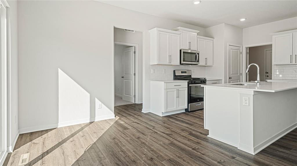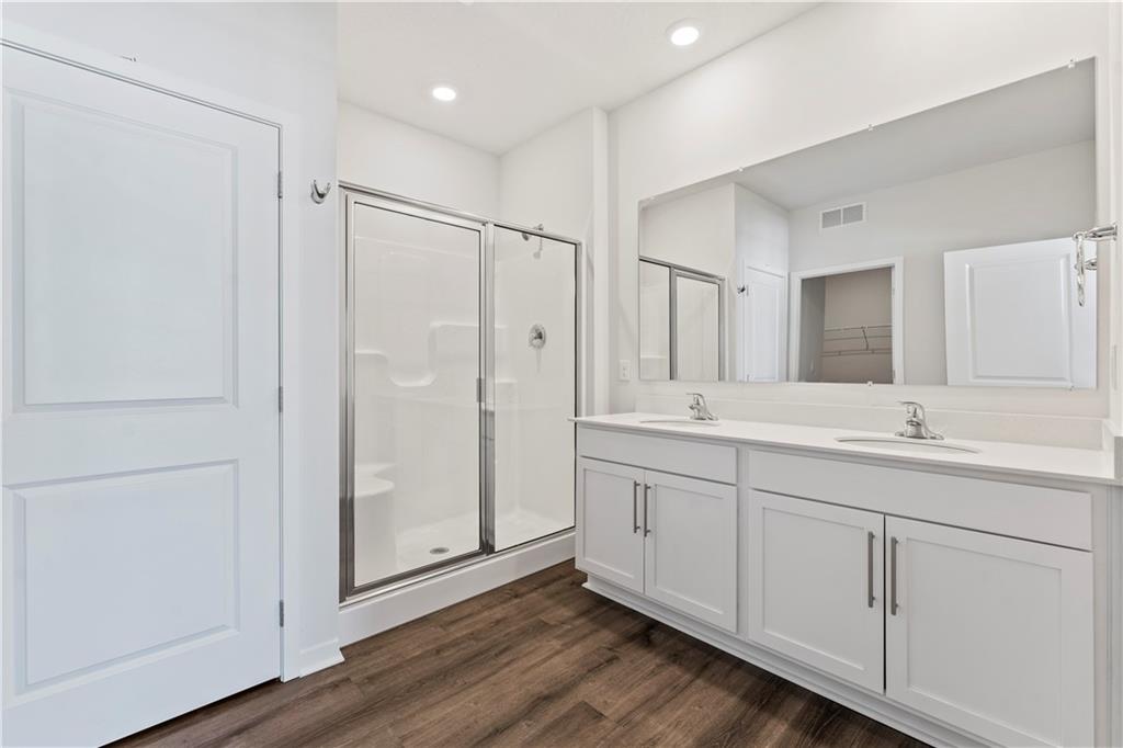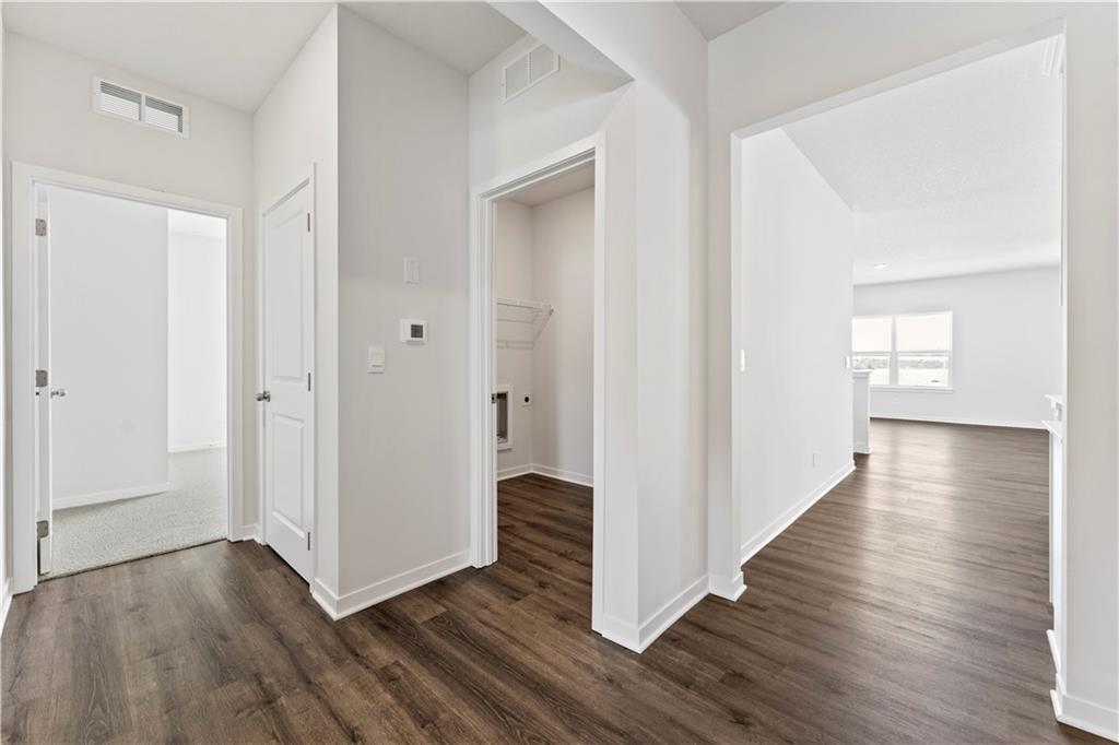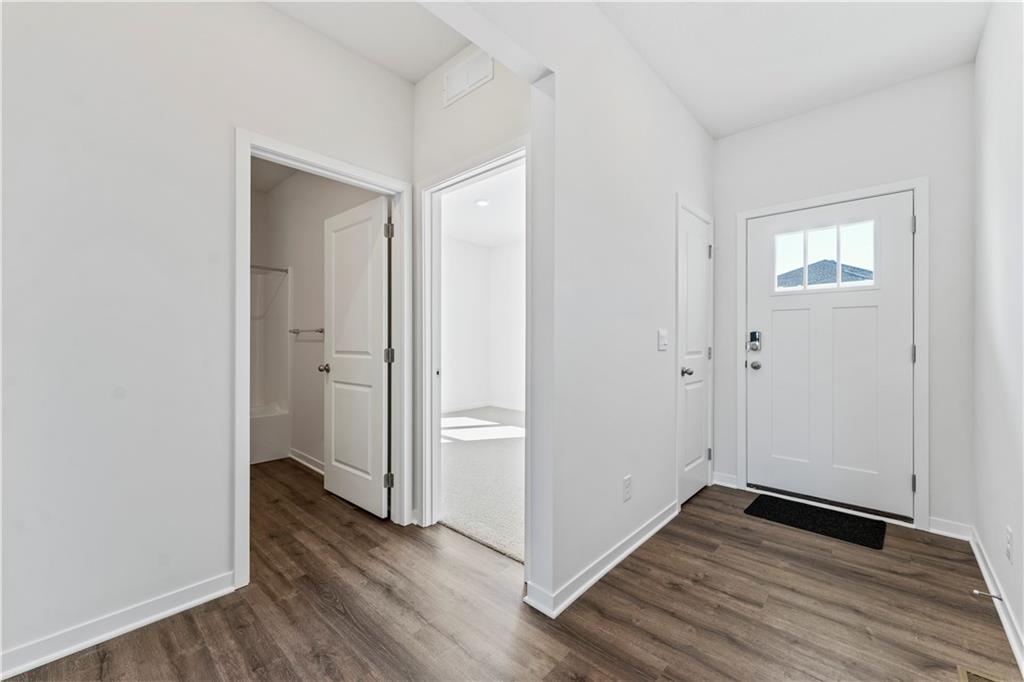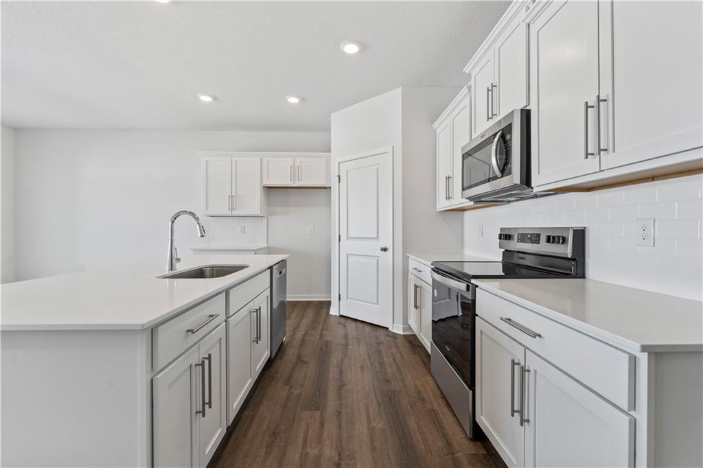 Welcome to Ella’s Crossing, where modern design meets timeless elegance in this exceptional home crafted by D.R. Horton, “America’s Builder.” This residence greets you with a three-rail, two-panel insulated front door that enhances both curb appeal and energy efficiency. Step inside to find a beautifully appointed interior with 9-foot ceilings that exude sophistication. The chef’s kitchen is the heart of the home, featuring 36-inch painted maple cabinets, quartz countertops, and state-of-the-art Whirlpool® stainless steel appliances, all designed to make cooking a pleasure. Retreat to the spa-inspired bathrooms, where quartz-topped vanities, Moen® Chrome Faucets, and luxurious showers await. The primary bath offers a 5-foot shower with a framed glass enclosure, ensuring your daily routines are indulgent experiences. This home is designed for the future with advanced Smart Home technology, including a Honeywell® Pro Z-Wave® Thermostat, Amazon Echo, and a connected home panel, allowing you to control and monitor your home from anywhere. Energy efficiency is prioritized with LED lighting throughout, a high-efficiency gas furnace, and insulated low E vinyl windows, ensuring comfort and savings year-round. Additional features such as luxury vinyl plank flooring, a spacious garage with opener(s), and detailed wiring solutions like dual data/TV lines in the main bedroom and family room, enhance both convenience and style. D.R. Horton’s commitment to quality is evident in every aspect of this home, offering you a place where luxury, technology, and comfort come together seamlessly. Don’t miss your chance to own this extraordinary home in Ella’s Crossing. Schedule your private tour today and experience the D.R. Horton difference!