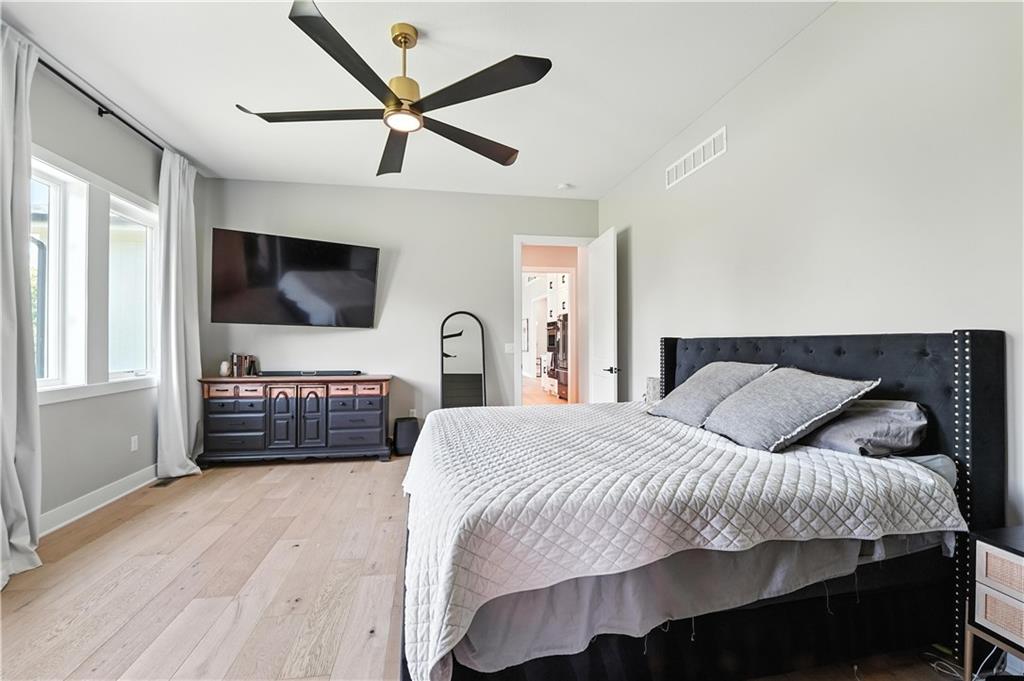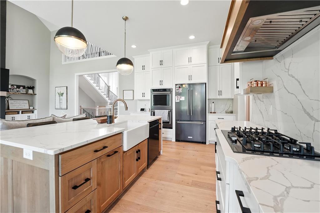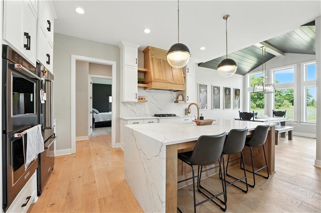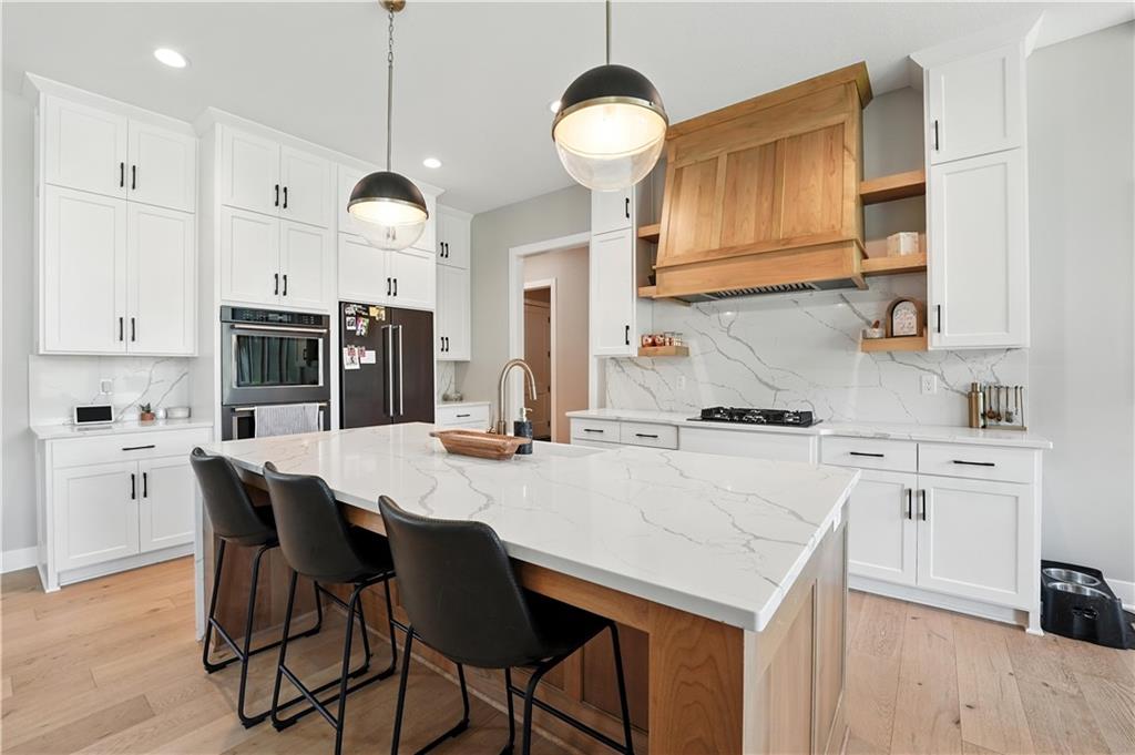 At the heart of the home is a gourmet kitchen designed to impress, with beautiful quartz countertops and backsplash, a large island, abundant cabinetry, and a walk-in pantry. The open dining and living areas provide ample space for family gatherings and entertaining guests.