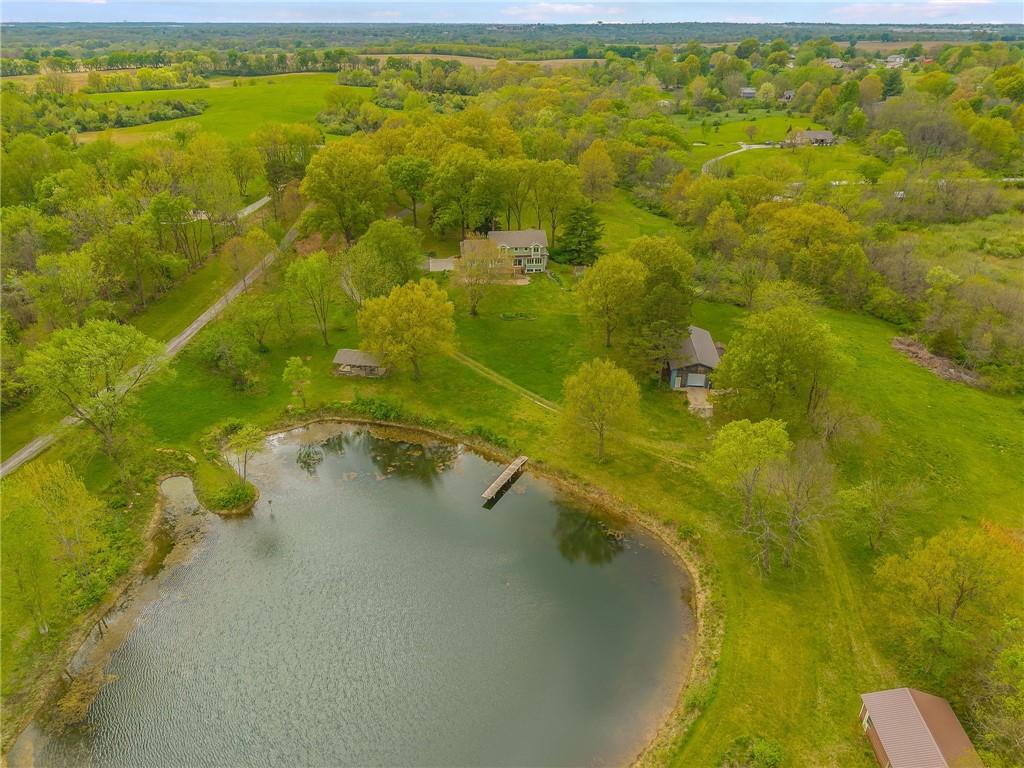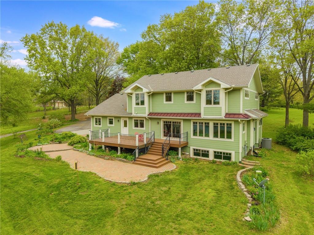Seller open to offers! Once-in-a-Lifetime Opportunity in the Liberty School District! Welcome to this truly stunning home nestled on over 9 acres of serene countryside. This rare property offers the ultimate in privacy, nature, and tranquility, where the only neighbors you’ll see might be grazing deer or songbirds in the trees. From the moment you step inside, you’ll feel the difference—this is not just a home, it’s a sanctuary. Imagine a carefully crafted residence boasting over 4,000 square feet of living space, featuring 5 spacious bedrooms and 4.5 bathrooms with an attached 2-car garage. The main living area features oak hardwood floors on first floor and upstairs, an eat-in kitchen with cherry butcher block top island flowing into a cozy family room with direct vent gas burning insert fireplace, a den, and main floor laundry. Enjoy main floor Primary Suite with Soaker Tub with oversized windows offering breathtaking views of the surrounding prairie and wildlife. Head upstairs and find 4 generous bedrooms with window seats, walk-in closets and 2 full-size baths! This exceptionally well-maintained property has all the extras, including an energy recovery system, HVAC heat pump (2 zones), spray foam insulation, marmoleum flooring, granite counters, gas stove, cherry cabinets, and a handcrafted island. The HUGE finished rec room includes a non-conforming 6th bedroom, a half bath, a workshop area, and tons of storage! Outdoors, enjoy a vast composite deck and patio, your own private pond, two versatile Morton buildings–both with water and electricity, established landscaping, prairie planting, and wide-open views in every direction. New roof in 2024, construction Hardie board siding, new asphalt drive in 2024. Additional buildable acreage is available for purchase, allowing even more room to roam or expand. If you’ve been searching for a one-of-a-kind gem, don’t let this rare opportunity pass you by. Homes like this only come around once in a lifetime.
