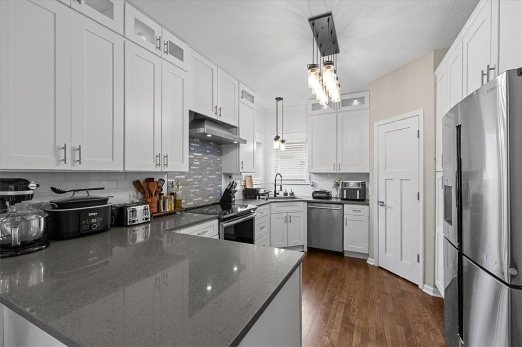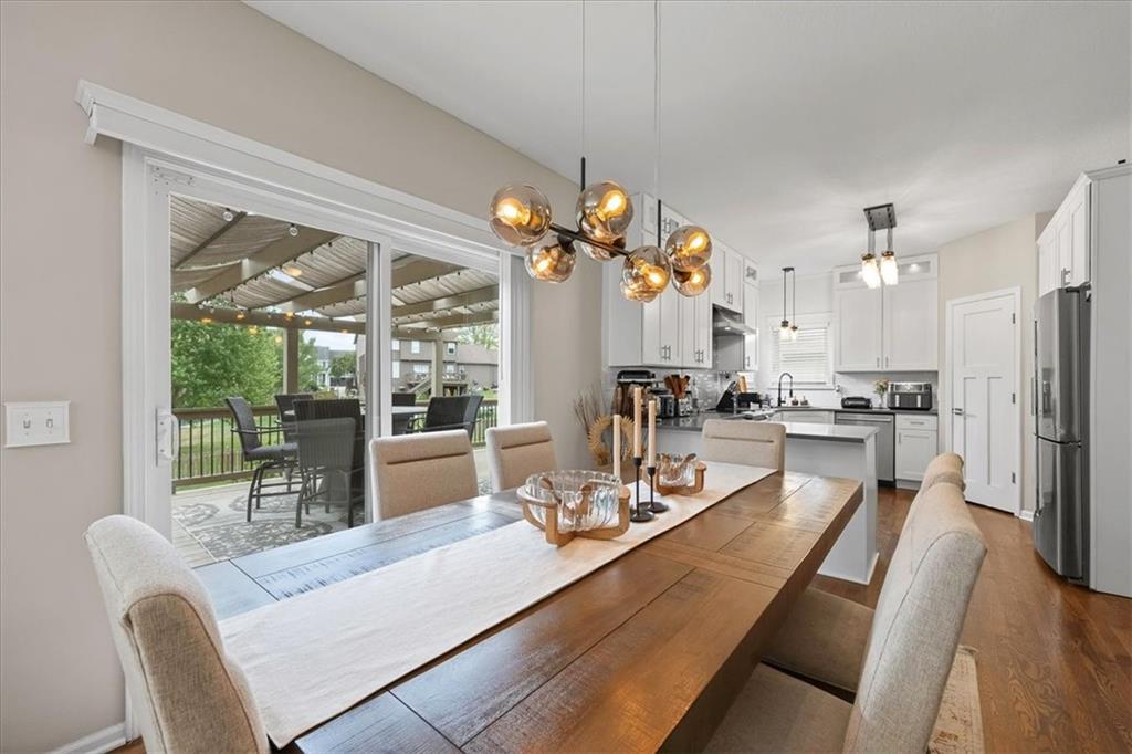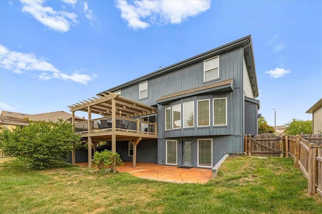 This Feels Like Home! This home showcases modern upgrades across all three levels and offers 5 bedrooms, 3.5 baths, and a 3-car garage. The kitchen features upgraded Shaker cabinets, while the finished basement offers a built-in electric fireplace with an elegant backdrop. Throughout the home, you’ll find stylish, modern light fixtures, including a grand, dazzling chandelier that greets you upon entry. The spacious main level features gleaming hardwood floors, a formal dining room, a cozy great room with fireplace and built-in shelves, and a flexible office space. The standout kitchen boasts painted cabinets, granite countertops, subway tile backsplash, and an induction range. Upstairs, the large primary suite includes a jetted tub, separate shower, walk-in closet, and convenient laundry area, plus three additional bedrooms. The finished walkout basement offers a rec area, mini kitchen, full bath, and a conforming 5th bedroom—perfect for guests or extended family. Outdoor living shines with a new deck, pergola, extended patio, and fenced yard—ideal for morning coffee or entertaining. Updates include Primary Suite bathroom, bathroom tile, tasteful interior and exterior paint, and so much more. You won’t be disappointed—welcome to your new home sweet home!