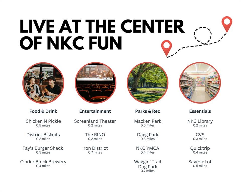 When you’re ready to step out, the best of NKC is at your doorstep. Stroll to restaurants, breweries, parks, and shops, in a community that makes life simple with free fiber internet and no earnings tax.