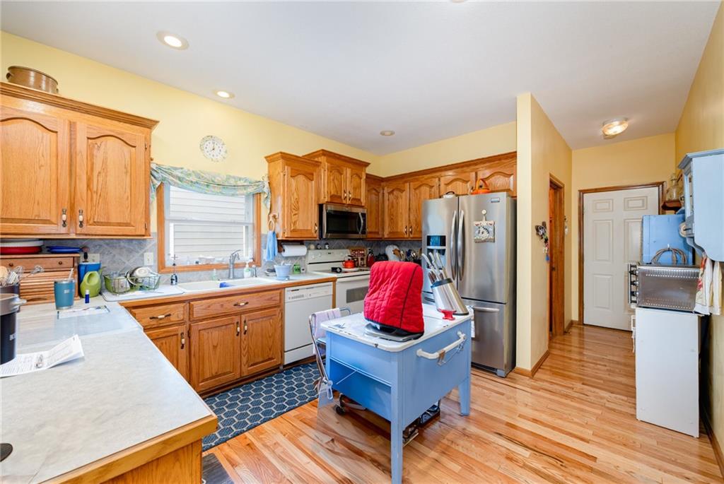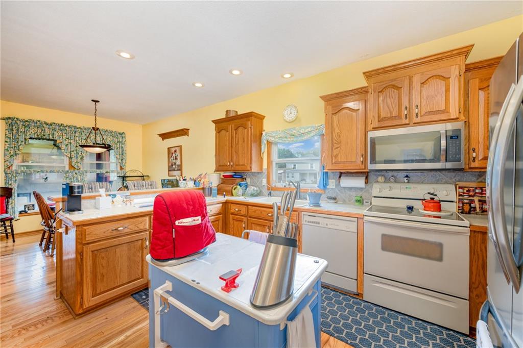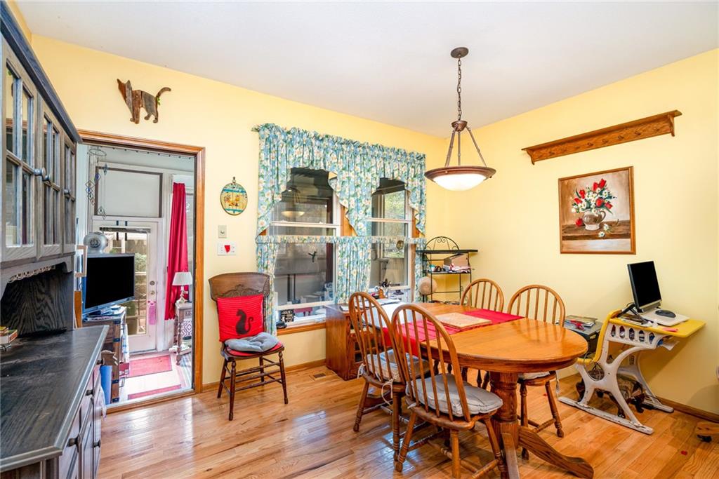 An exceptional find in the heart of North Kansas City! This contemporary home features gorgeous hardwood floors, vaulted ceilings, main level primary suite, formal dining room, eat in kitchen, and an enclosed porch which opens to the fenced-in backyard.