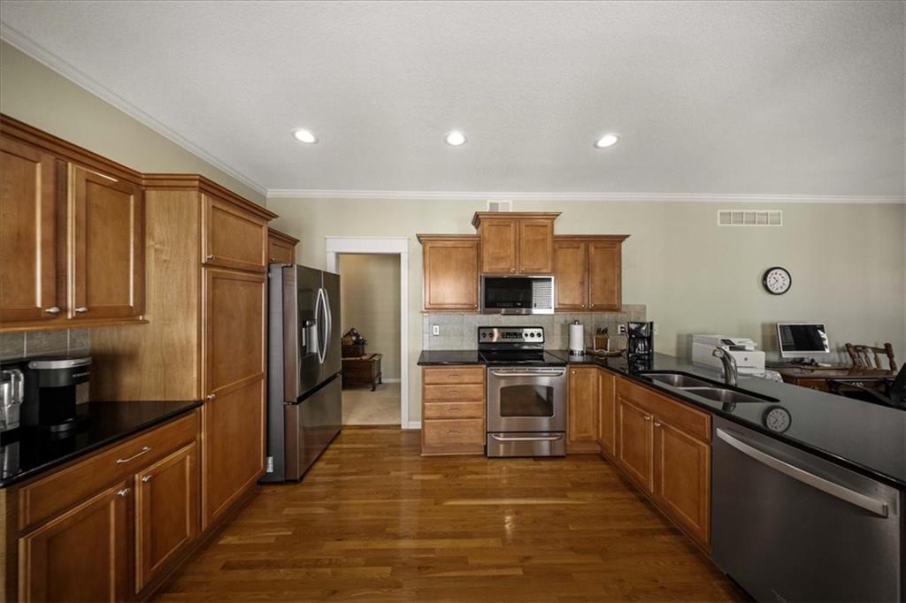 - Equipment Dishwasher, Disposal, Dryer, Microwave, Built-In Electric Oven, Stainless Steel Appliance(s), Washer