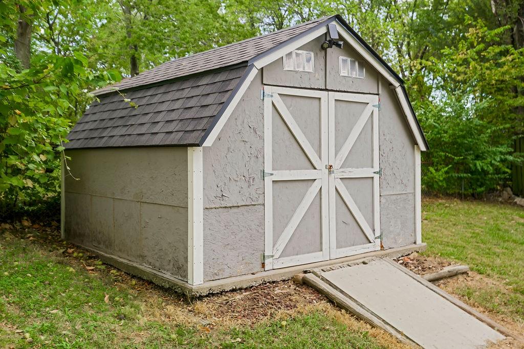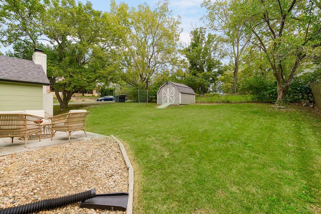 The basement provides plenty of storage, while the backyard includes green space plus a shed for tools and toys.