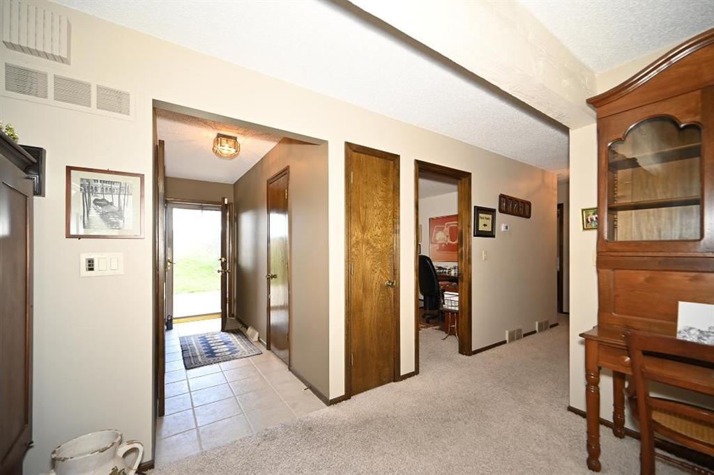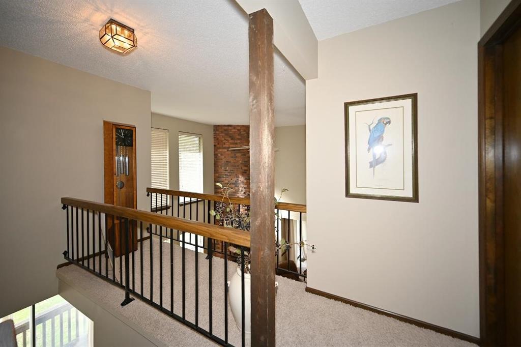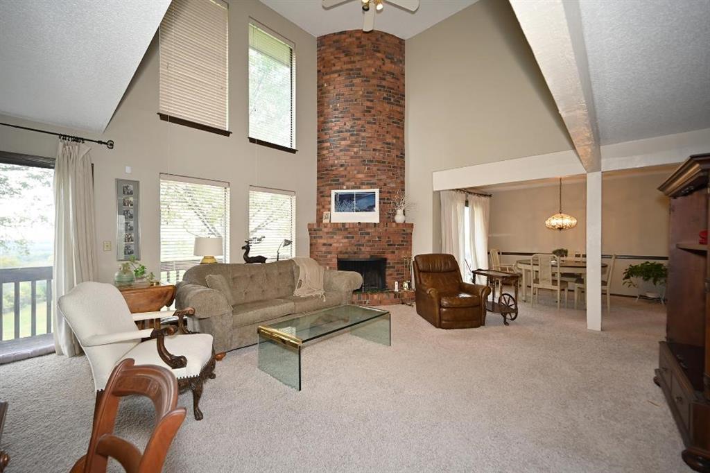 This beautiful custom-built home offers breathtaking views and a thoughtful layout designed for comfort and style. The main level features a welcoming tile entry that leads into a spacious kitchen with new tile flooring, custom cabinetry, and a center island. A breakfast room or office space adjoins the kitchen, and the formal dining room showcases newer flooring and newer paint throughout. The expansive great room boasts soaring ceilings and a dramatic brick fireplace that extends all the way to the ceiling.