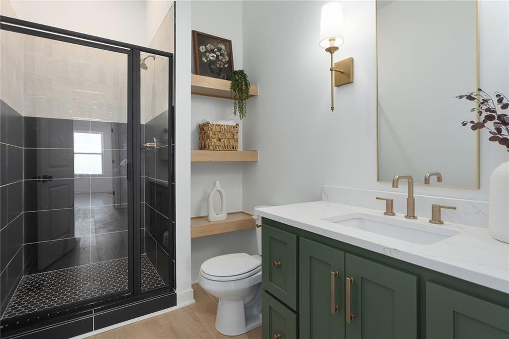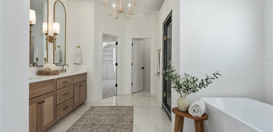 Step inside this stunning 2 Story Home, The Perry II, thoughtfully designed by IHB Homes, with high-end finishes and custom touches throughout. Featuring 5 bedrooms and 4 bathrooms, this home combines timeless elegance with modern functionality. The main floor showcases soaring 10-foot ceilings, abundant natural light, and a seamless flow for both everyday living and entertaining. The interior is anchored by white oak accents and additional hardwood flooring, including in the primary suite, creating warmth and sophistication in every room. Custom details such as panel walls in the entry, a striking custom railing, upgraded quartz surfaces, designer lighting, and tailored tile work elevate the design. Outdoor living is equally impressive, with a composite deck complete with fireplace, a rock wall backdrop, and a larger patio—perfect for gatherings or quiet evenings at home. This home truly blends craftsmanship, comfort, and style for a one-of-a-kind living experience.