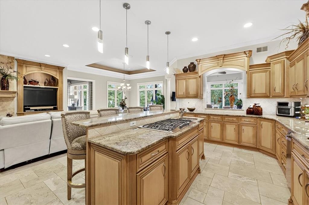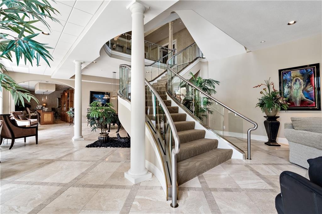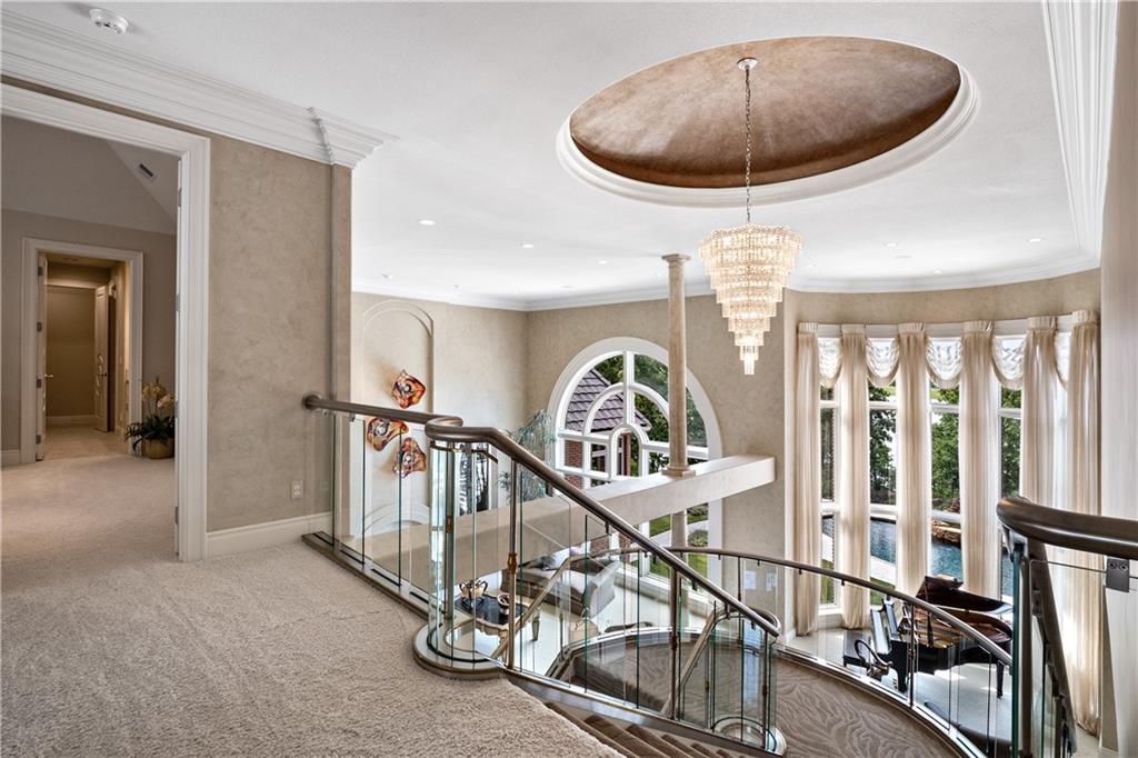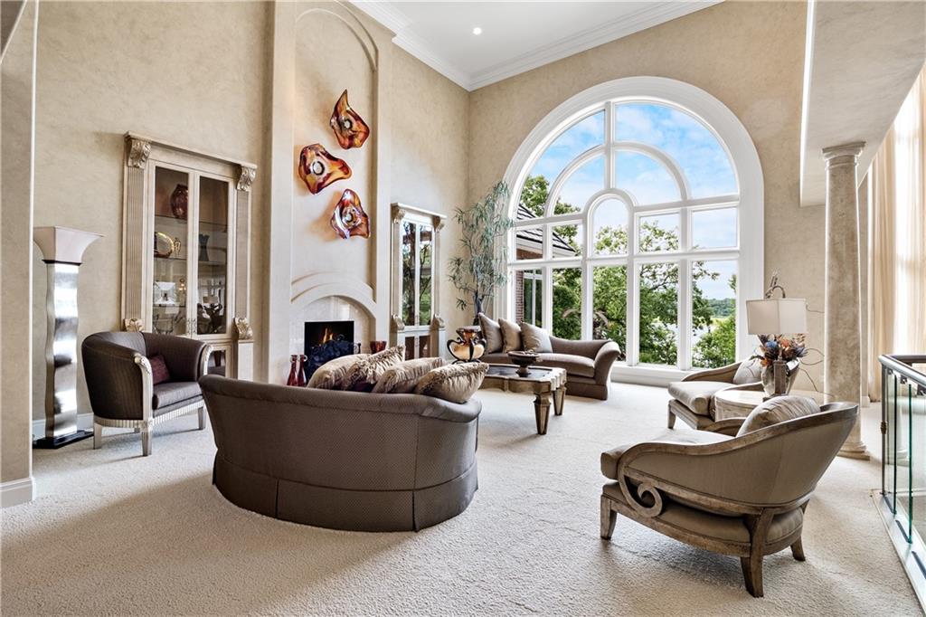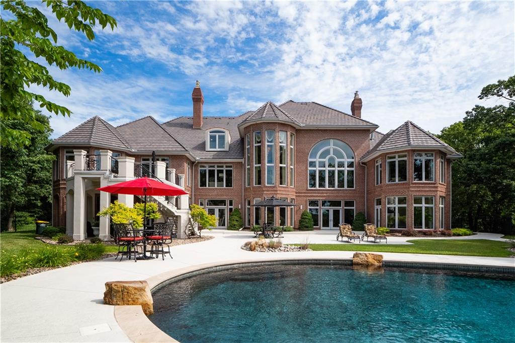 Situated on a private point in the West Shore of Riss Lake, this elegant lakefront residence spans 11,700 sq. ft. on 1.22 acres of beautifully maintained wooded landscape. Nestled within a private gated community, you’ll be immediately impressed by the stunning exterior, impeccable circular drive, and custom glass entry. Inside, this meticulously designed home impresses at every turn. From the incredible custom stainless steel and glass staircase to the expansive entertainment area, this home is truly one-of-a-kind. Flooded with natural light, it boasts soaring ceilings and walls of windows. On the main level, you’ll find a formal living and dining room, a large office, a separate den, a cozy hearth room, a designer kitchen with Viking and Sub Zero appliances, and a beautiful sunroom with incredible views. The Owner’s suite is a retreat filled with special details such as custom ceiling features, a lovely sitting room, expansive closets, a whirlpool tub, and more. The upstairs features a large loft area and three spacious bedrooms, each with private baths and walk-in closets. This home also includes a large gym, a playroom, and a fabulous home theater.
