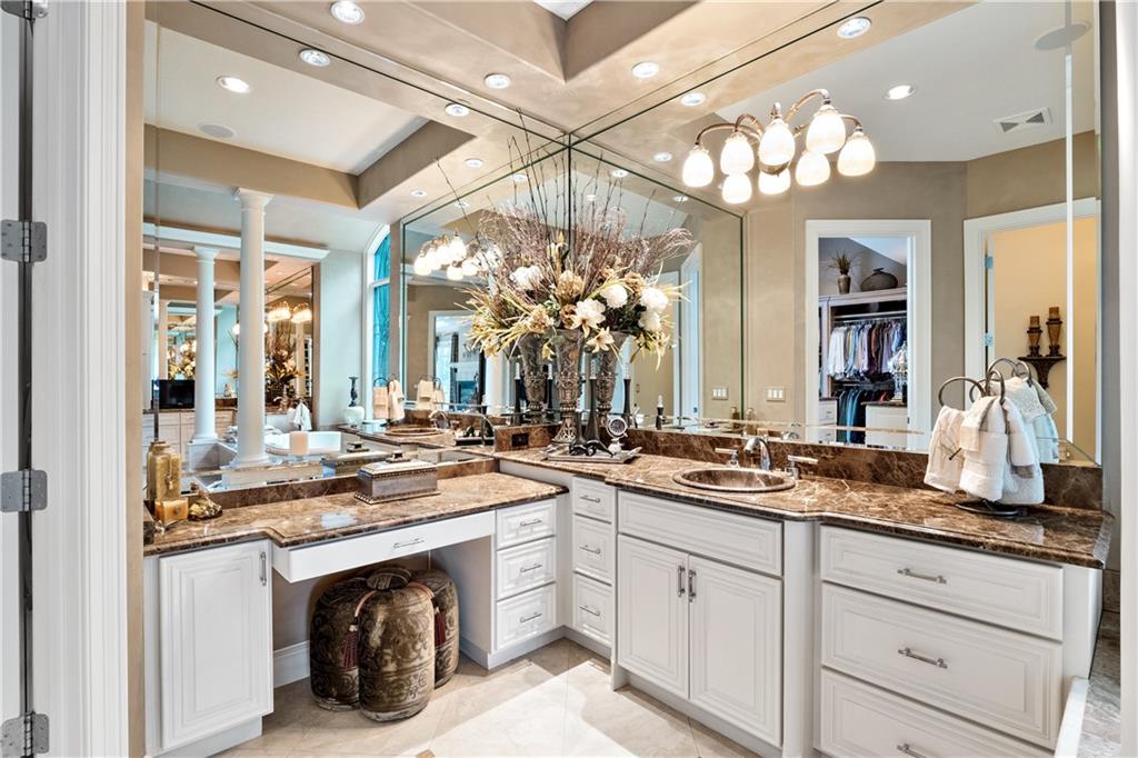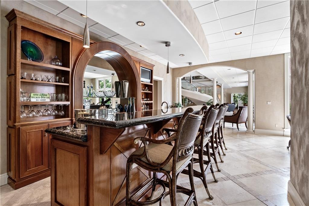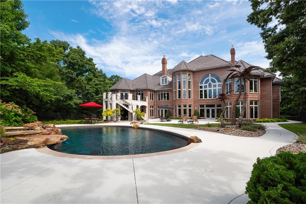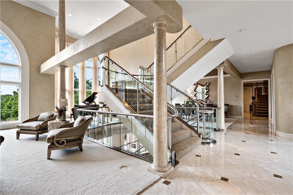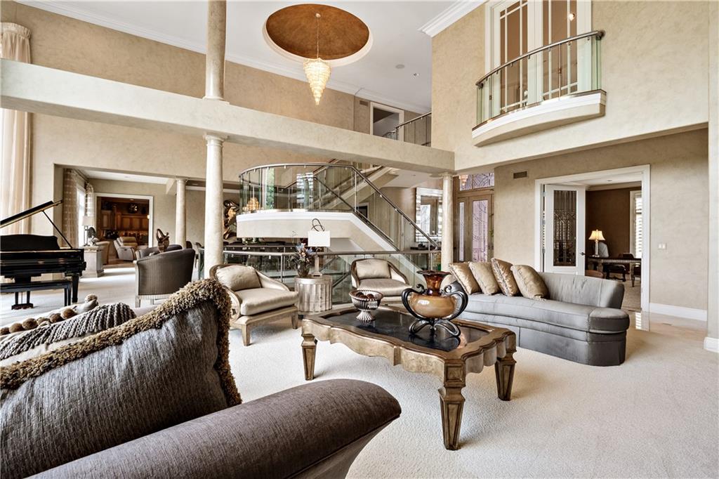 Situated on a private point in the West Shore of Riss Lake, this elegant lakefront residence spans 11,700 sq. ft. on 1.22 acres of beautifully maintained wooded landscape. Nestled within a private gated community, you’ll be immediately impressed by the stunning exterior, impeccable circular drive, and custom glass entry. Inside, this meticulously designed home impresses at every turn. From the incredible custom stainless steel and glass staircase to the expansive entertainment area, this home is truly one-of-a-kind. Flooded with natural light, it boasts soaring ceilings and walls of windows. On the main level, you’ll find a formal living and dining room, a large office, a separate den, a cozy hearth room, a designer kitchen with Viking and Sub Zero appliances, and a beautiful sunroom with incredible views. The Owner’s suite is a retreat filled with special details such as custom ceiling features, a lovely sitting room, expansive closets, a whirlpool tub, and more. The upstairs features a large loft area and three spacious bedrooms, each with private baths and walk-in closets. This home also includes a large gym, a playroom, and a fabulous home theater.