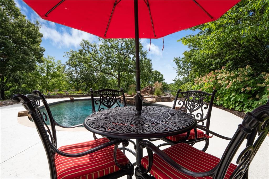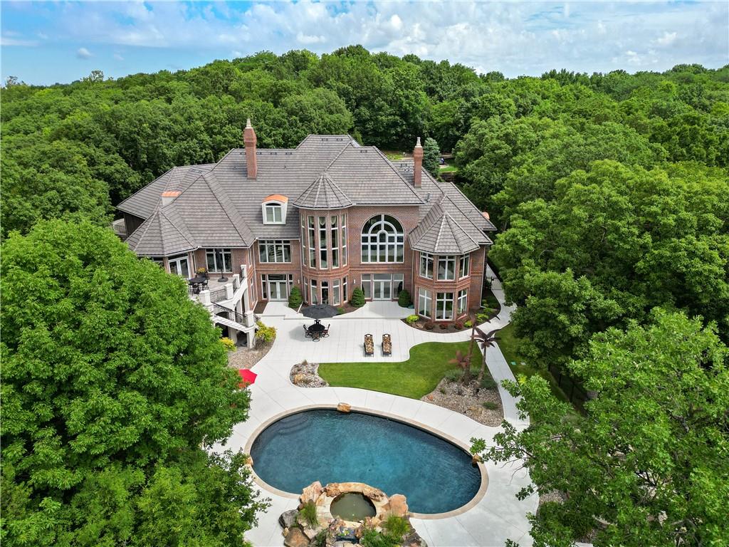 For hosting, there’s a full bar and a second kitchen, making entertaining guests an effortless yet elevated experience. Step outside to your own resort-like oasis, featuring a beautiful lagoon-style pool, an outdoor kitchen, and an expansive deck area to entertain or relax and enjoy the lake views. Just off the pool area is an indoor spa room with an attached bathroom and steam shower. The property includes a five-car garage ideal for car enthusiasts, plus a dedicated shop area. Don’t miss this rare opportunity to own this masterpiece of craftsmanship located just minutes from MCI Airport, Charles B. Wheeler Airport, downtown KC, and the Plaza. Privacy, luxury, and location at their finest! Taxes and square footage are estimated and should be verified by Buyer’s agent.