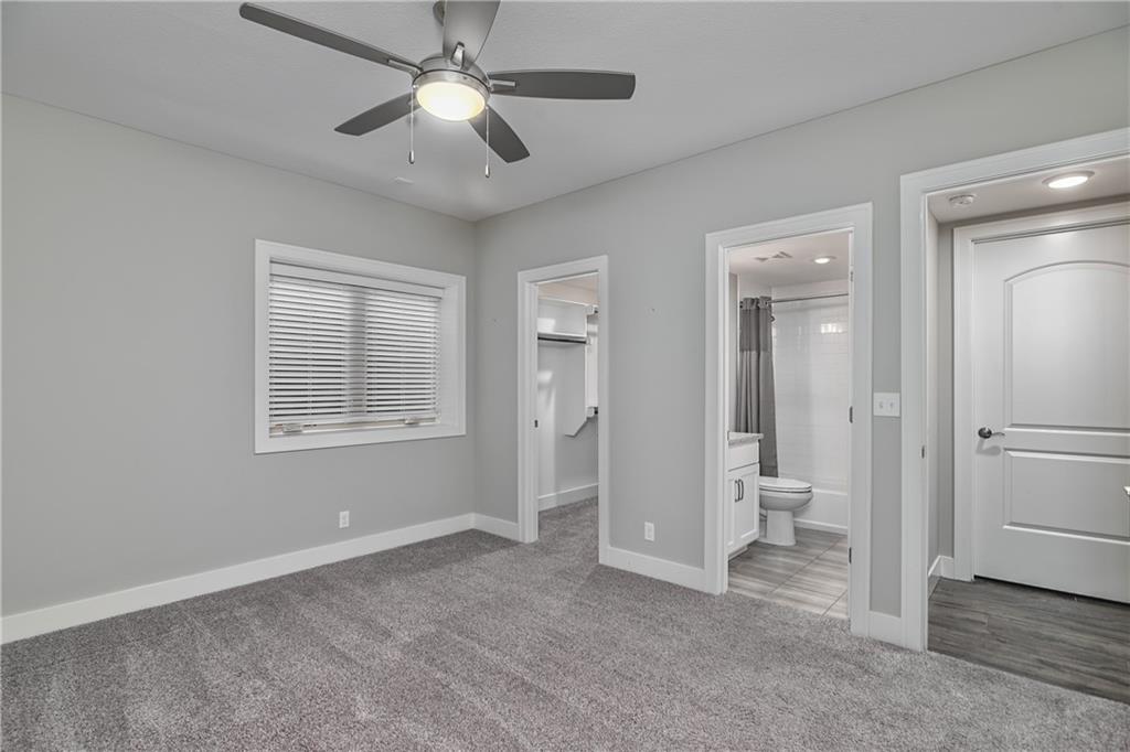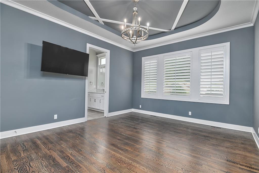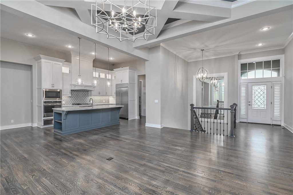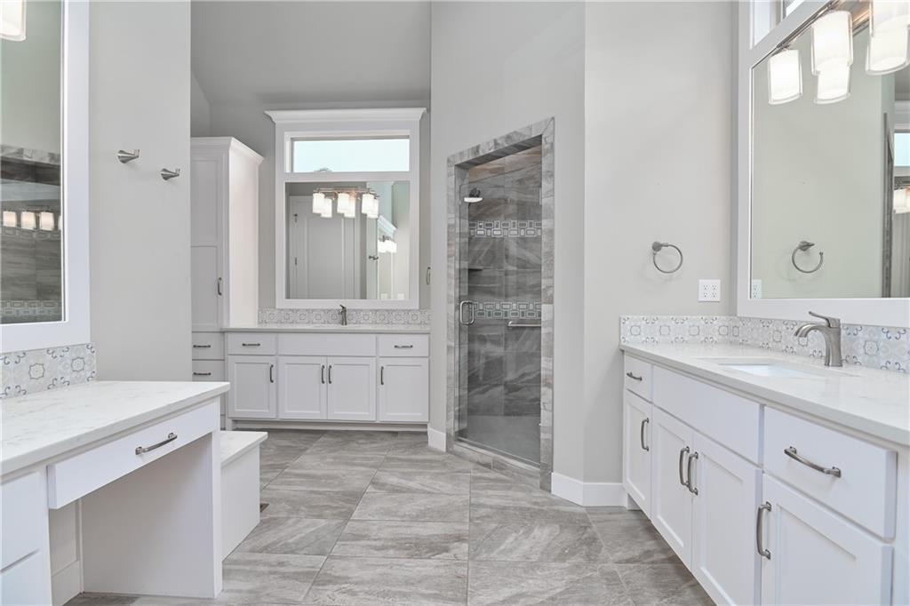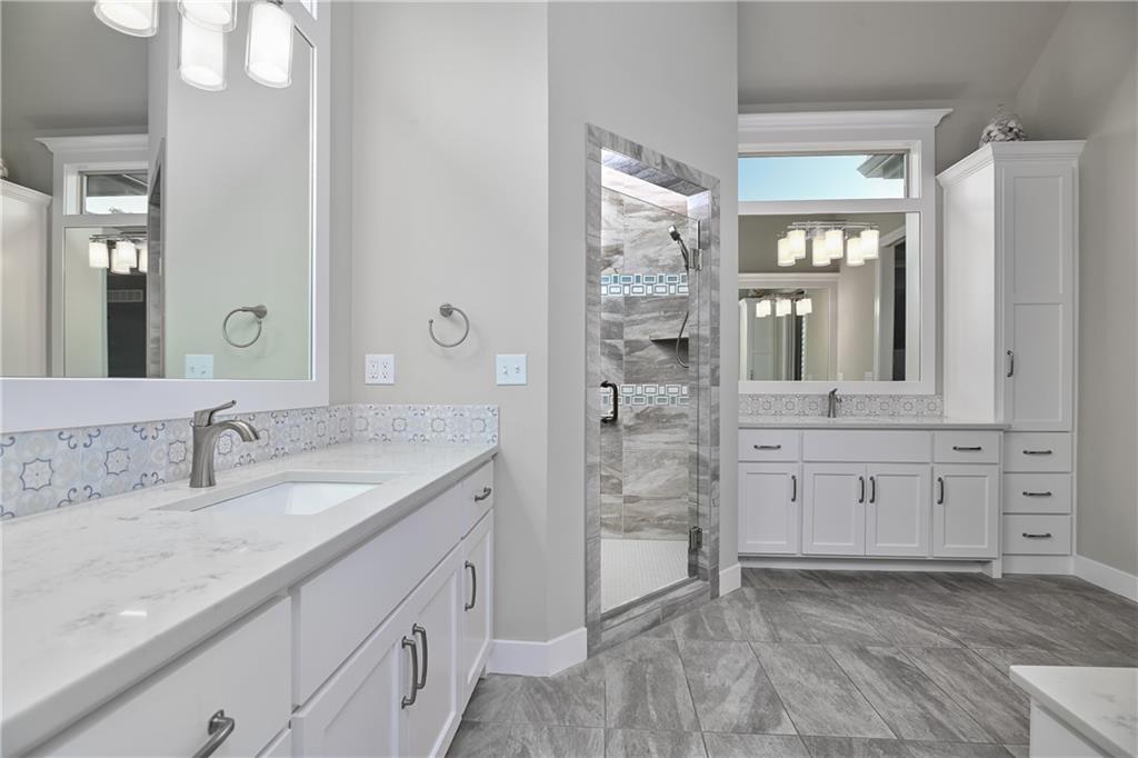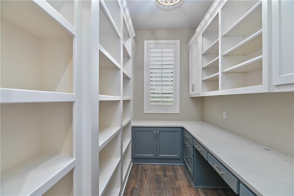 The chef’s kitchen boasts a large walk-in pantry with a built-in coffee bar and flows seamlessly into the main living space—ideal for entertaining. The expansive primary suite features an oversized custom closet, zero-entry shower, and convenient laundry access directly off the closet. A second main-level bedroom offers a private en-suite bath, perfect for guests. A full home office with custom built-ins provides the ideal workspace.