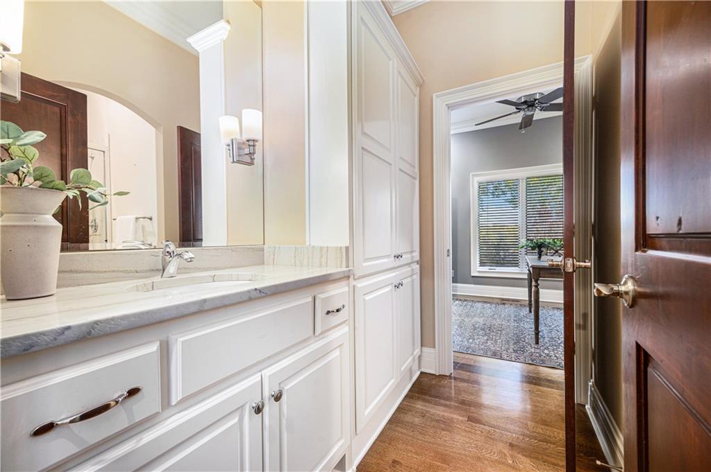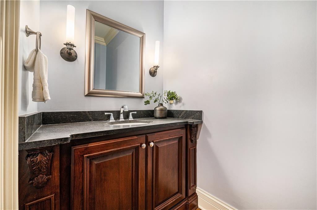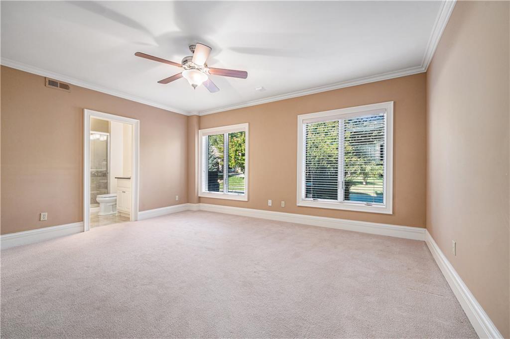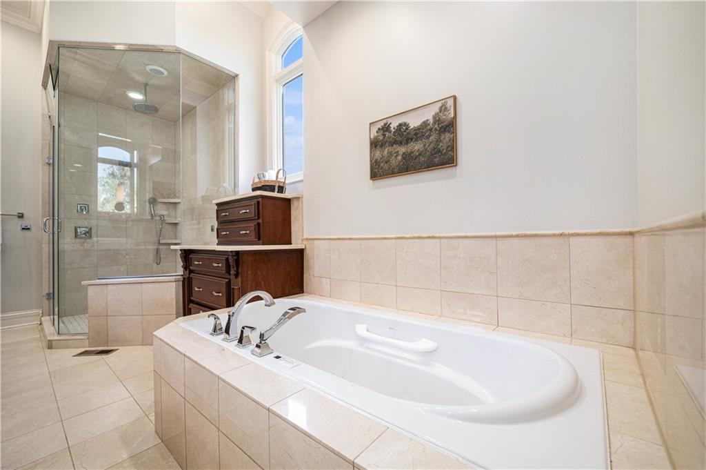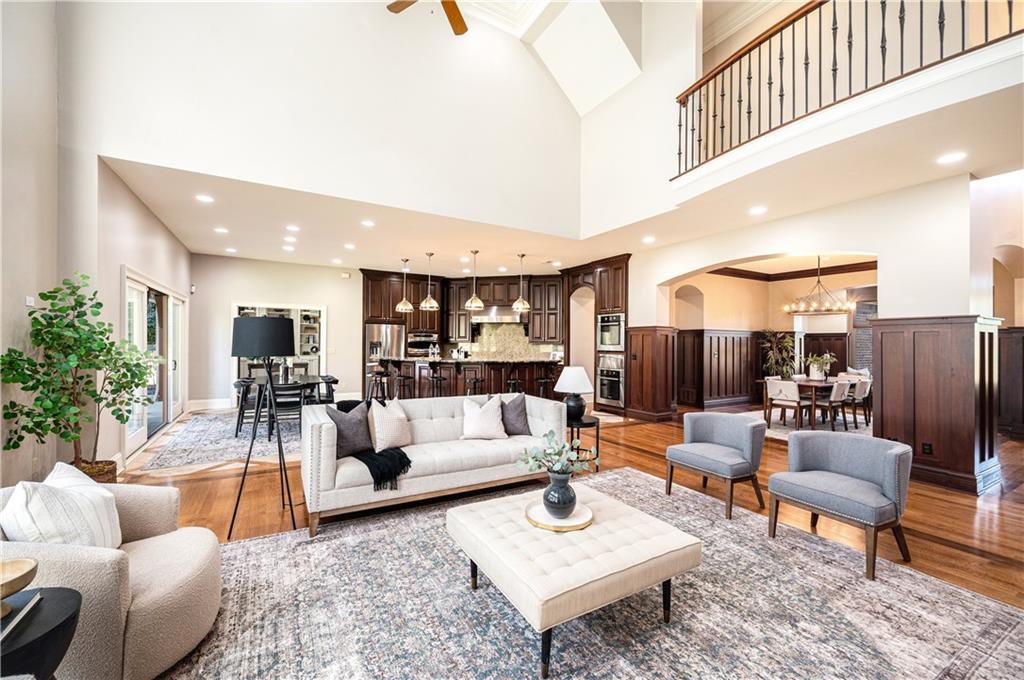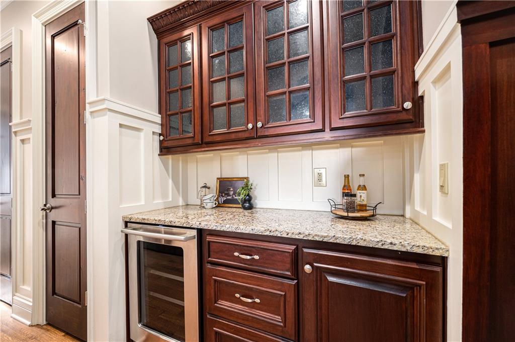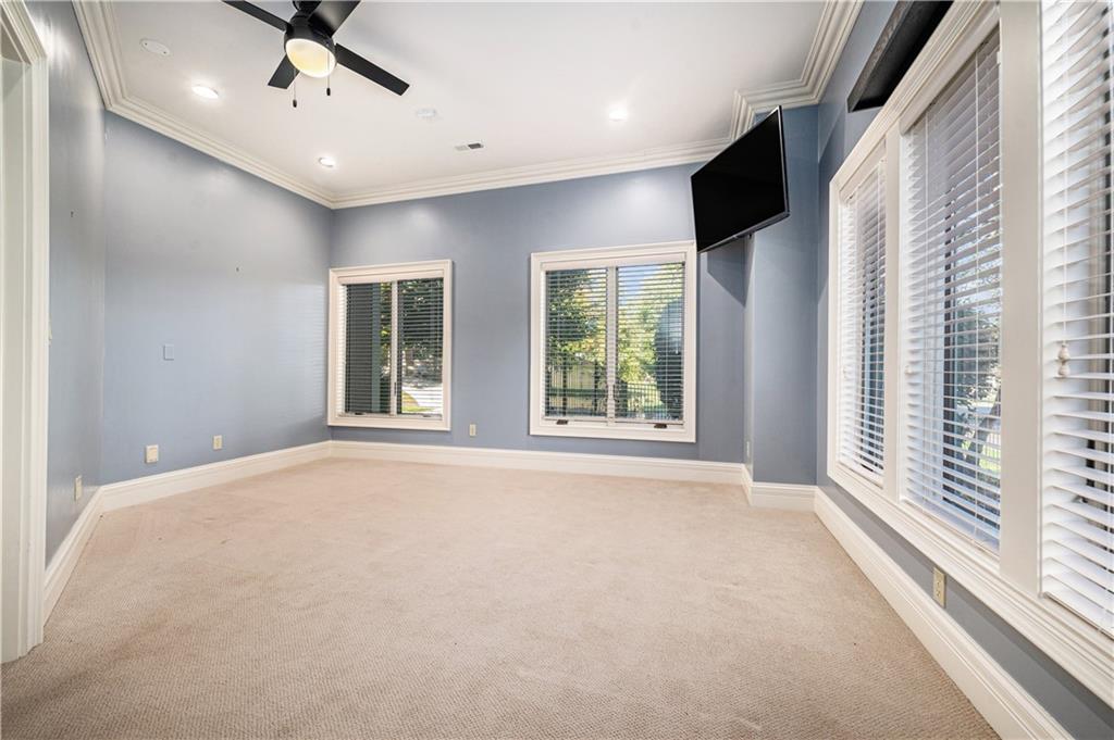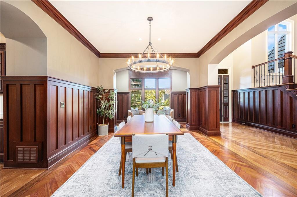 As you step through the soaring entry, you’ll be greeted by an open floor plan, designer chandeliers, exquisitely detailed trim, beautiful hardwoods, and crown molding. The gourmet kitchen is a chef’s dream, featuring exotic granite counters, soft-close cabinets and drawers, two new Bosch dishwashers, a Therador 6-burner gas range with griddle, Viking hood, Bosch double oven and warming drawer, a new refrigerator, beverage refrigerator, and a walk-in pantry. Slide open the glass doors to your outdoor oasis — a covered porch with a gas fireplace, expansive patio, and space to grill and relax. The main floor primary suite is a true retreat, complete with its own fireplace, frame TV, heated tile floors, a jetted tub, walk-in shower with glass surround, and walk-in closet. On the mail level there is also a study with a full bath, along with laundry area.