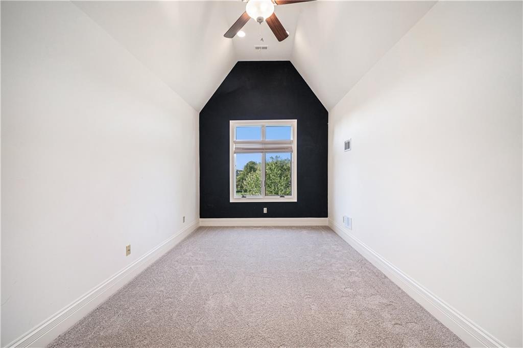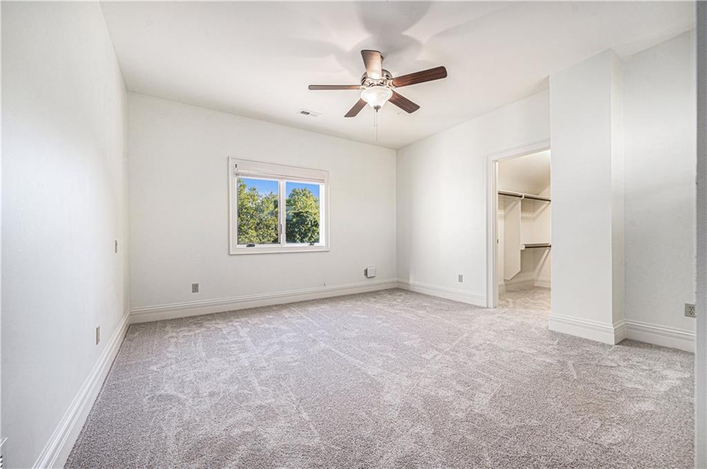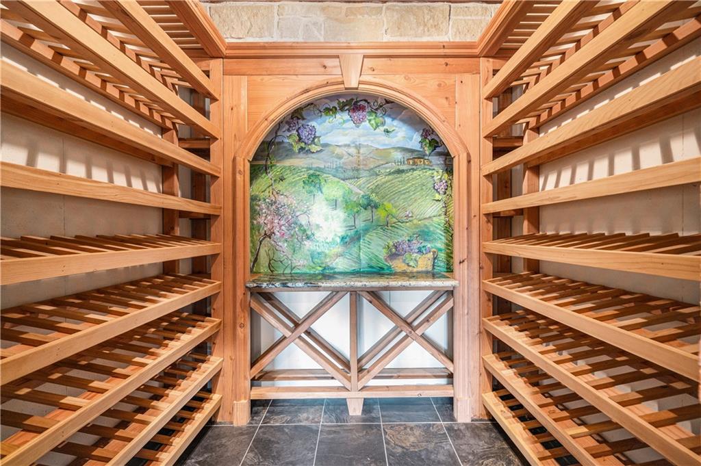 Upstairs, you’ll find three large bedrooms with walk-in closets, a bonus/gaming room, and second laundry. Walkout lower level is an entertainer’s paradise — an open recreation space, wet bar/second kitchen, wine cellar, fifth bedroom suite, second office or workout room with breathtaking green views, and unfinished storage space. Additional storage, or golf cart garage beneath the covered patio. A new 5-foot black aluminum fence with two gates provides privacy and security.