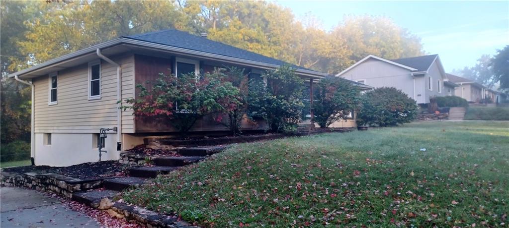 Brick raised ranch on a wooded lot in the hills of unincorporated Platte County! No KC earnings tax! Newer roof, windows and a great wooded lot!