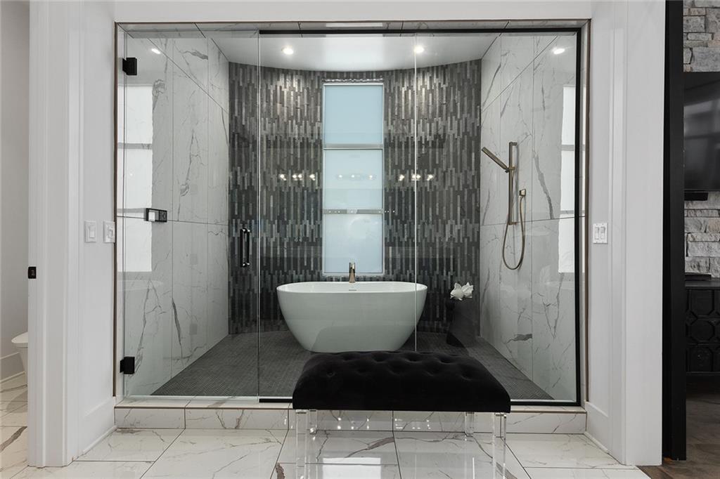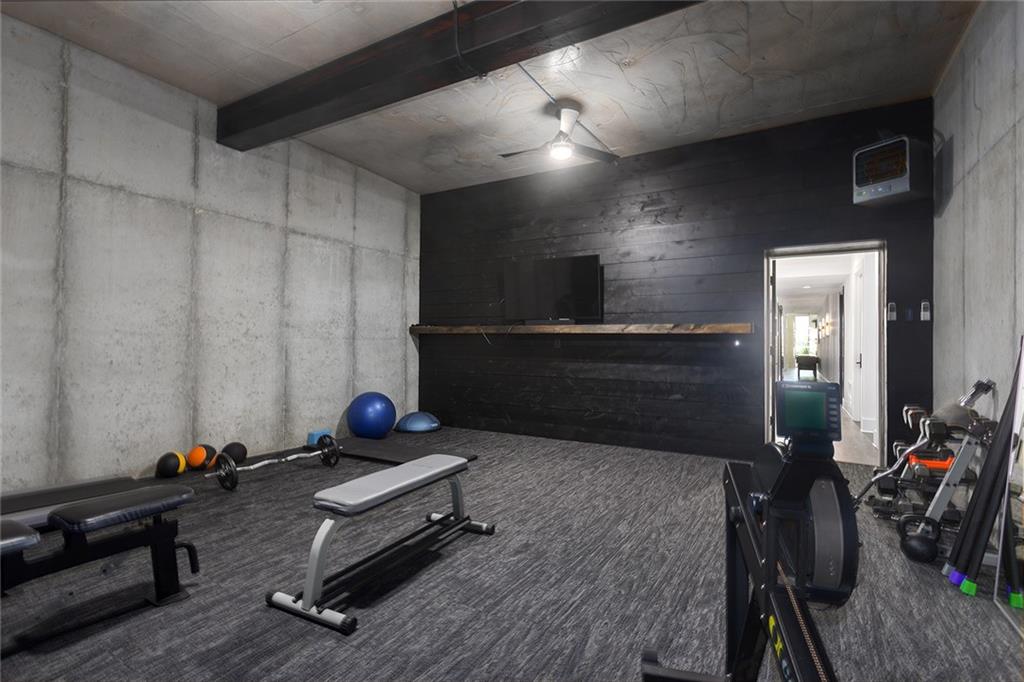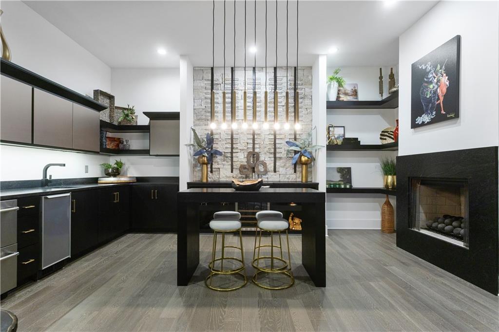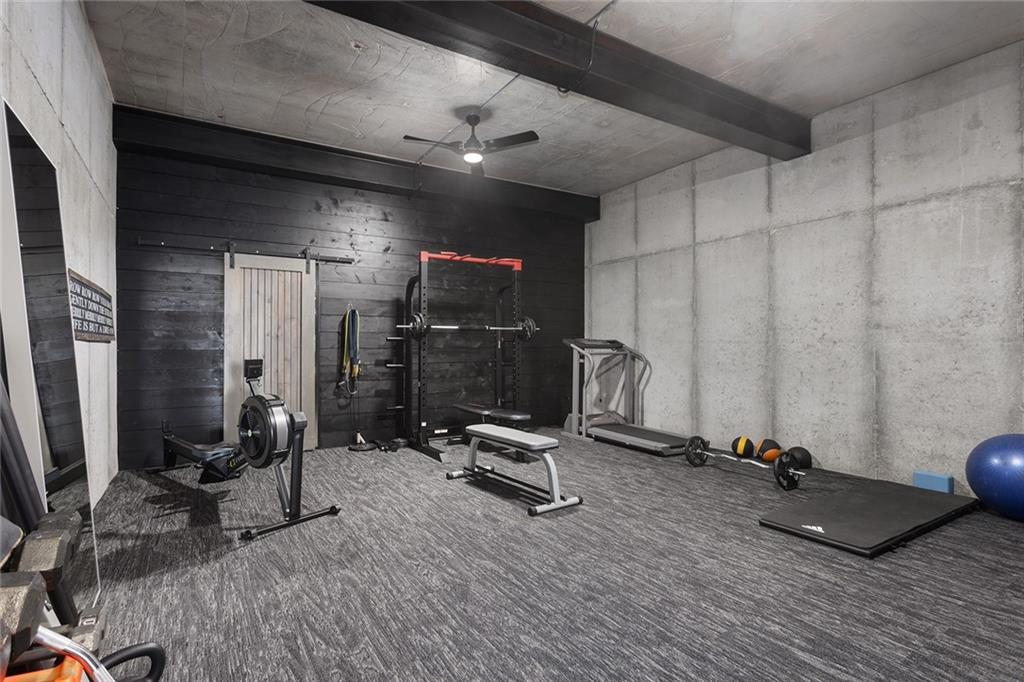 Now the lower level welcomes you with a stone wall accented with floating shelves…can’t wait for you to see this!! Full bar with ice maker, wine refrigerator, fireplace and more room to entertain or walk into your own home theatre with projector screen…cozy up and watch a great movie or two. Lower level also has three on-suite bedrooms with walk-in closets and two with access to patios. And if you would like a work-out step inside your private gym!! Plenty of storage in lower level and for our car lovers… four autos and a golf cart fit in this tandem garage. Equipped with laundry on each level.