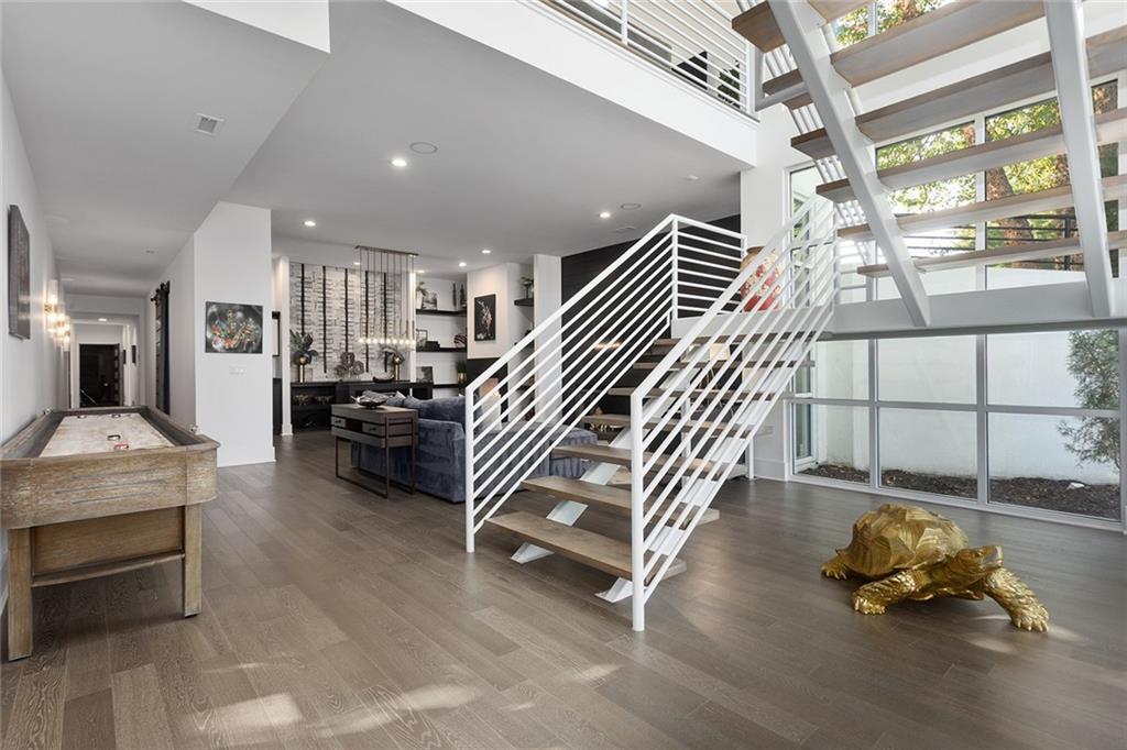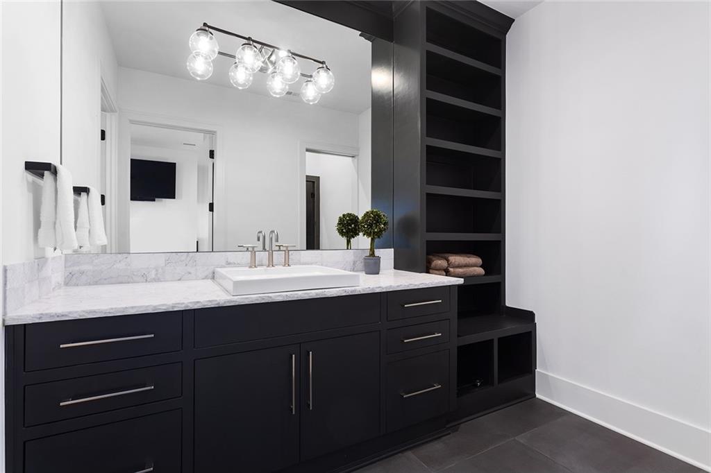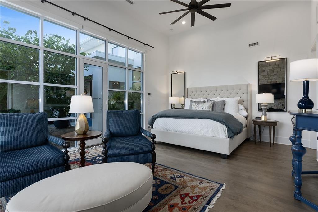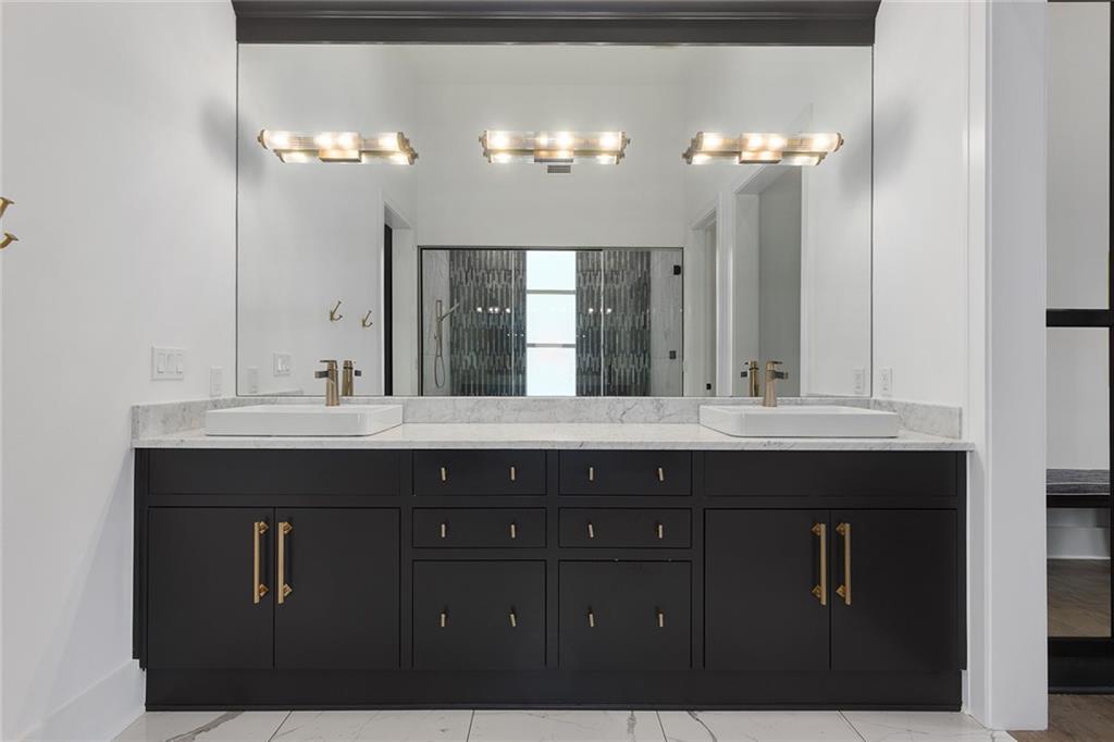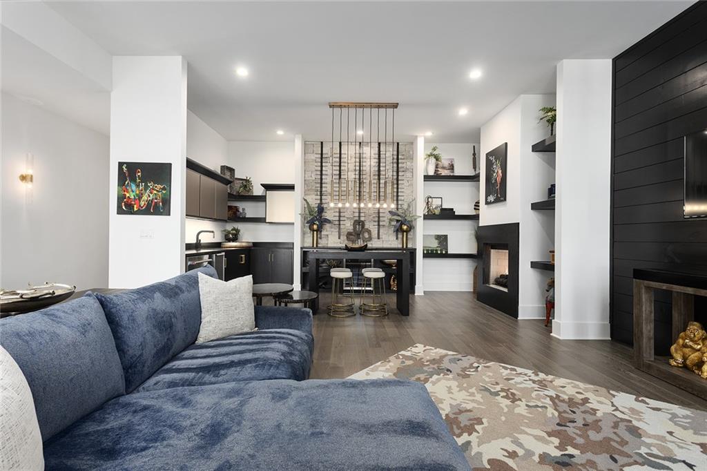 Now the lower level welcomes you with a stone wall accented with floating shelves…can’t wait for you to see this!! Full bar with ice maker, wine refrigerator, fireplace and more room to entertain or walk into your own home theatre with projector screen…cozy up and watch a great movie or two. Lower level also has three on-suite bedrooms with walk-in closets and two with access to patios. And if you would like a work-out step inside your private gym!! Plenty of storage in lower level and for our car lovers… four autos and a golf cart fit in this tandem garage. Equipped with laundry on each level.