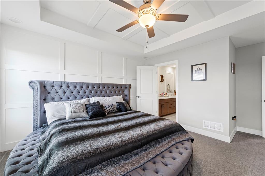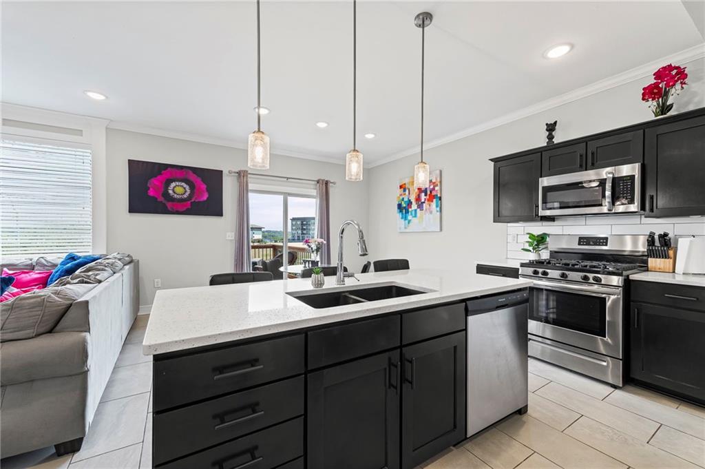 PRICE REDUCED! Your chance to purchase thousands under appraised value! With no details overlooked, this recently built 3-bedroom, 4 bathroom stylish home is move-in ready offering an unbeatable location, just minutes from Zona Rosa and charming downtown Parkville. The impressive curb appeal and front porch will welcome you upon arrival. The foyer opens to a spacious living room, dedicated dining area, and an updated kitchen with island, granite counters, walk-in pantry, gas appliances and soft closed cabinets. A charming powder room, two car garage, and an outdoor terrace with stunning views complete the first floor.